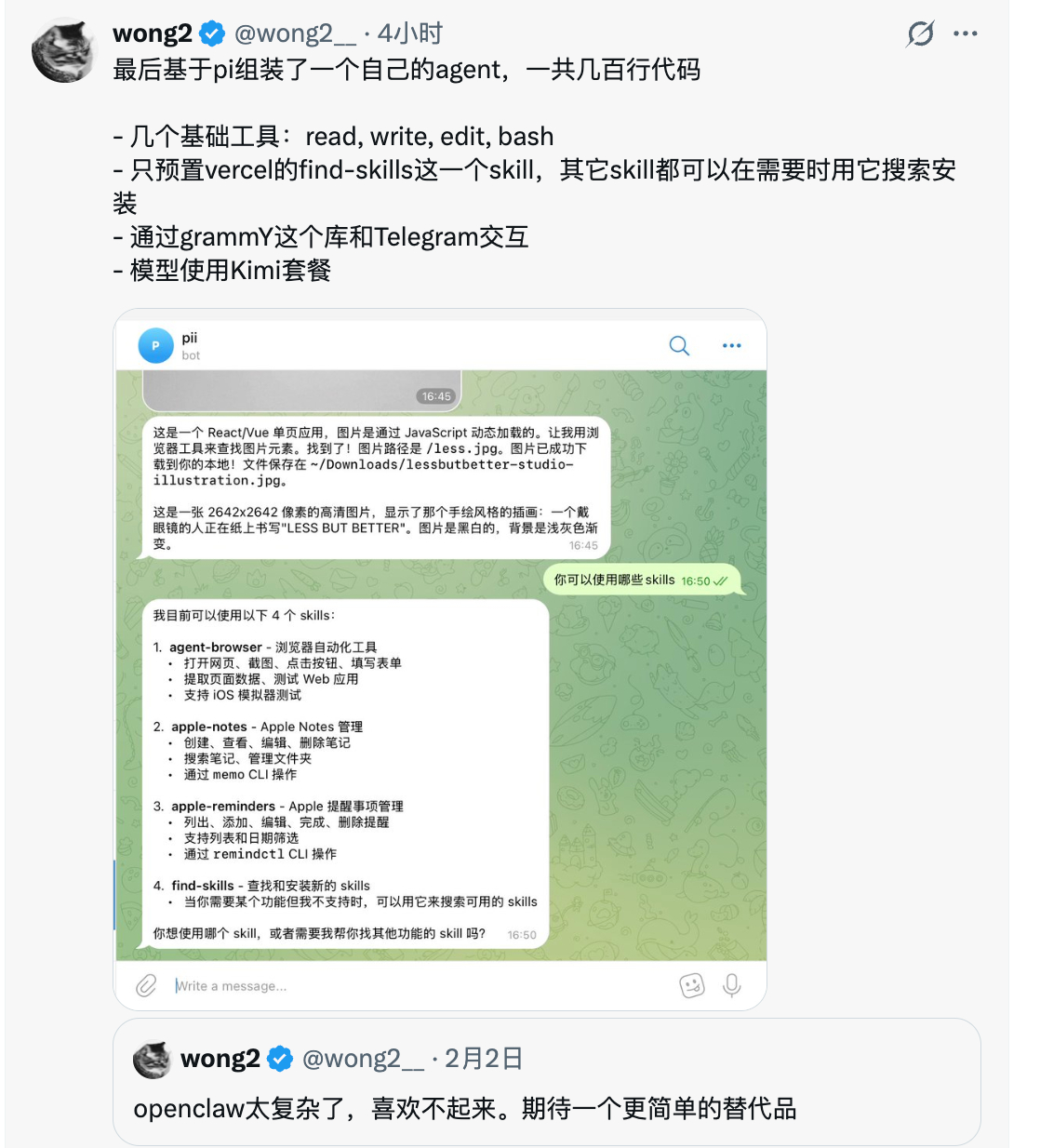 有点意思,正在让 Claude Code 搓这样一个简化版的 Openclaw