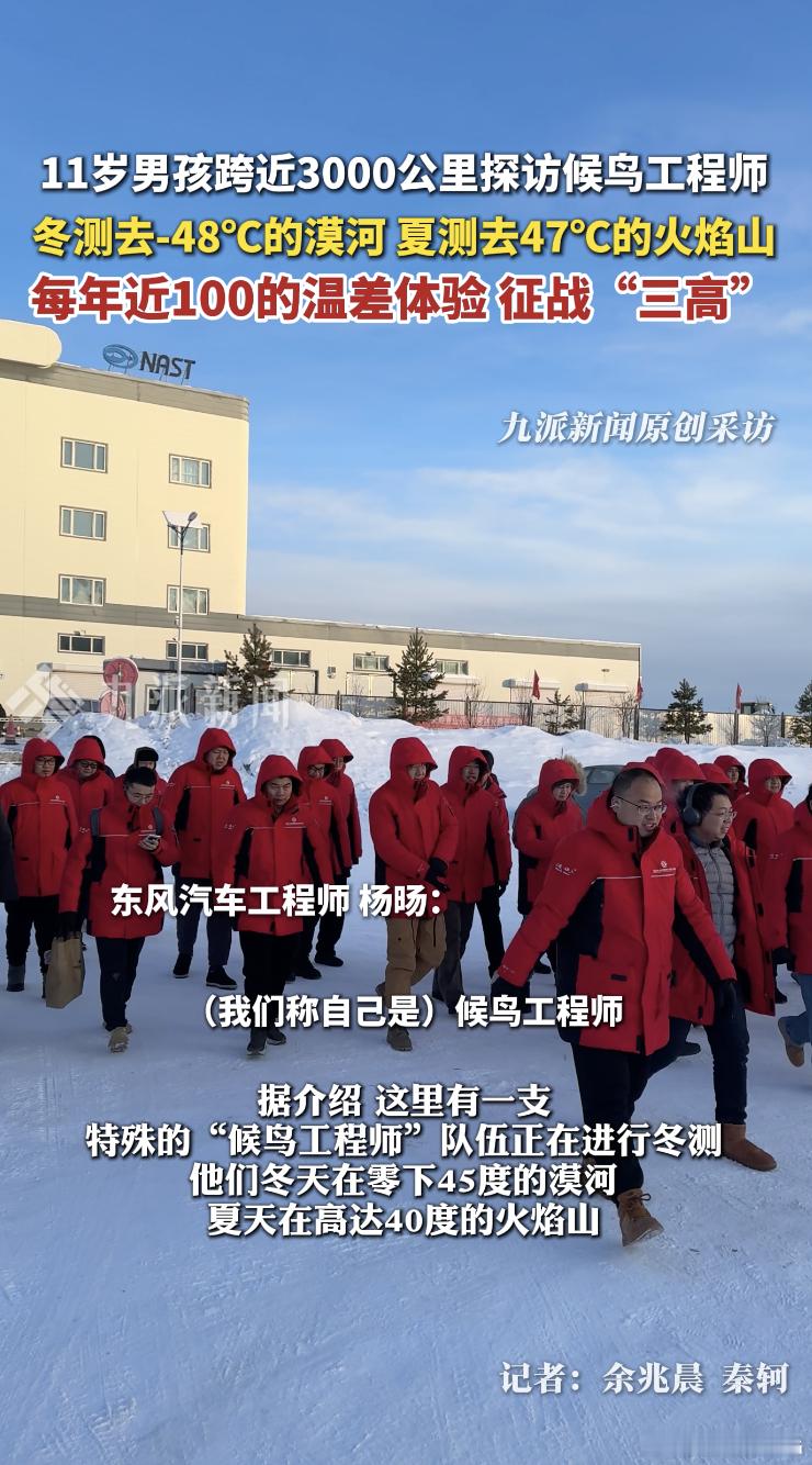 东风汽车的品质,从来不是一个人的功劳!有在极致环境里测车的候鸟工程师,有靠听诊器找异响的 “金耳朵” ,有跨专业参与轮毂电机国家课题项目的女工程师,还有左手造车右手夺冠的赛车手工程师。这群人在不同岗位上各展所长,而候鸟工程师就是冲在一线的测试先锋,用极限测试为研发打下坚实基础!11岁男孩痴迷汽车飞漠河看冬测 真羡慕这小逼崽子我这个年纪还得过一年才能买到人生第一本《汽车之友》,还是过期两年那种