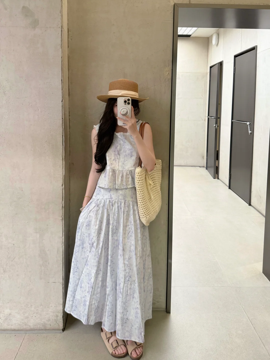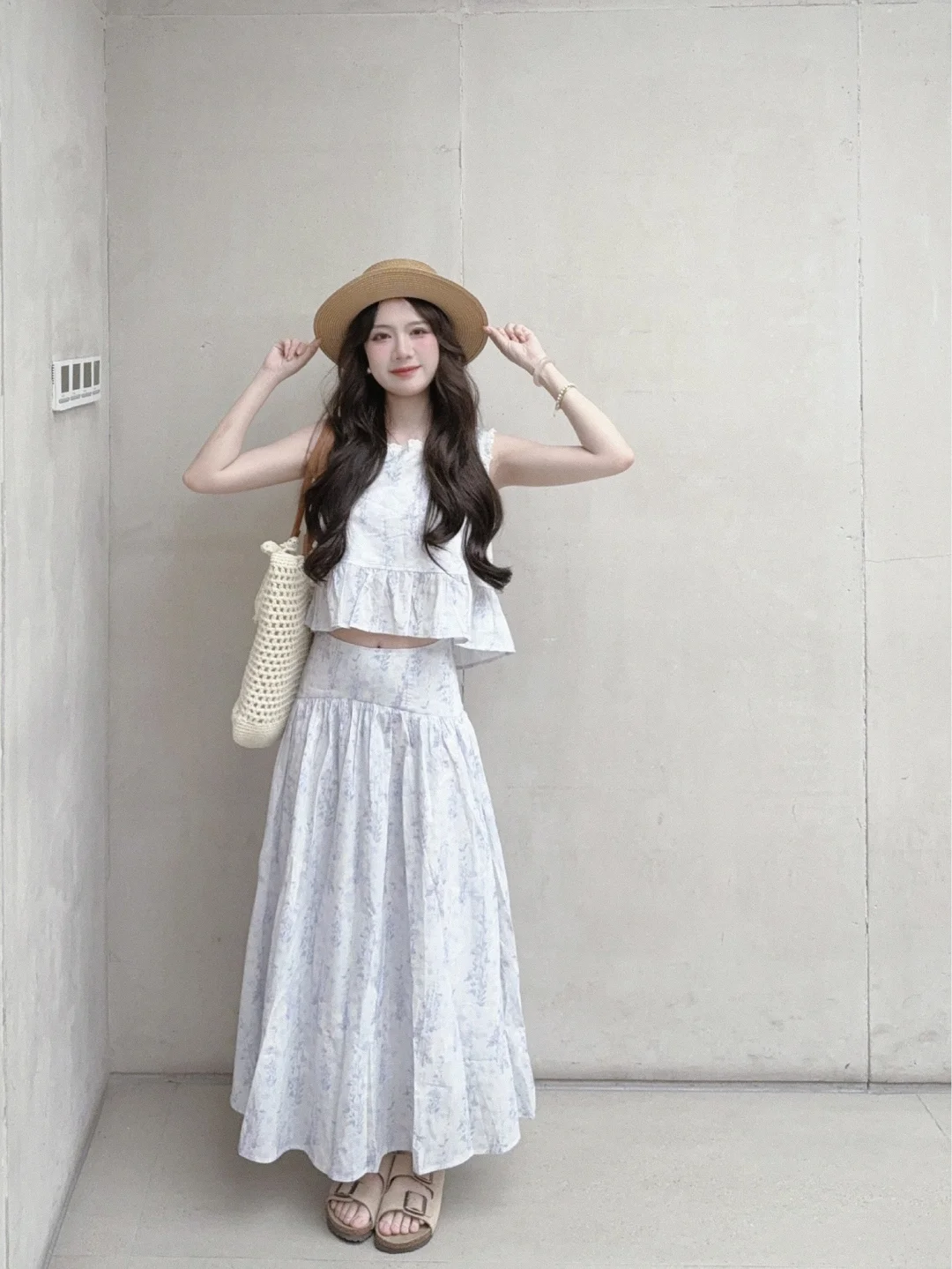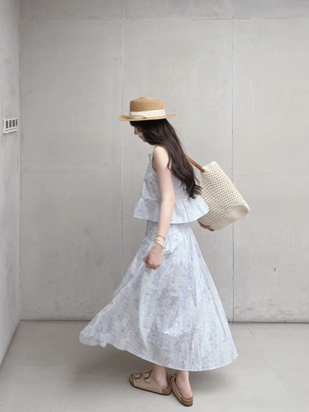 👉🏻半裙上半身搭配白色或者淡紫色也很美 可以选正肩短袖或者白色吊带➕白色衬衫/淡紫色衬衫 (试了一下淡粉色也不违和)鞋子搭配勃肯鞋或者凉鞋都可以(单鞋也行)