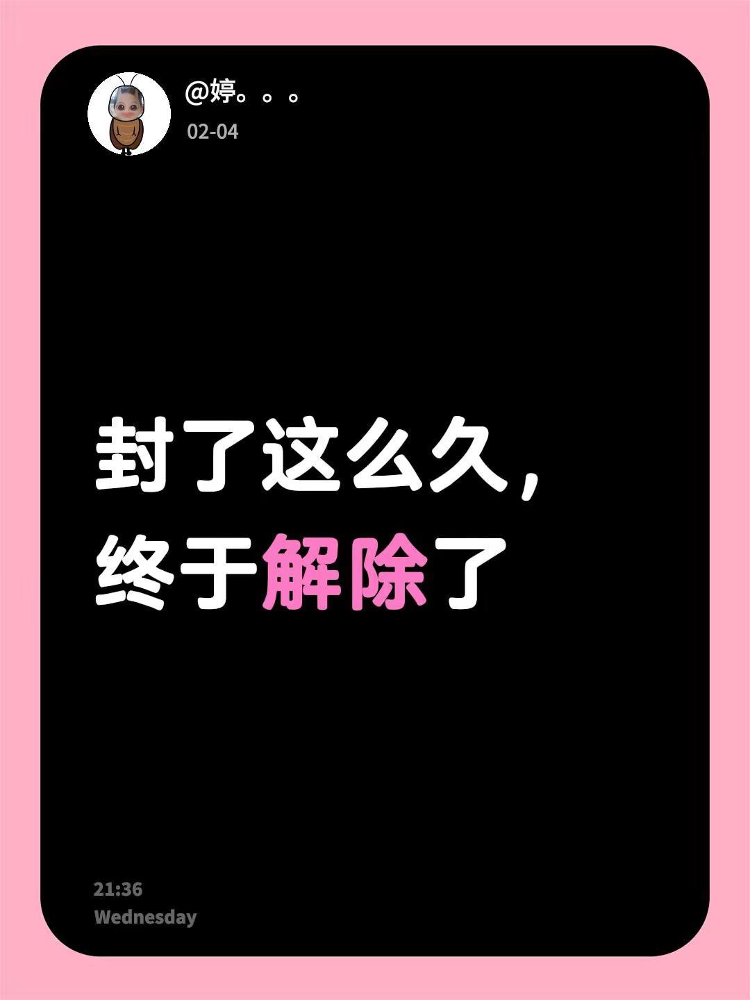 封了这么久,终于解除了