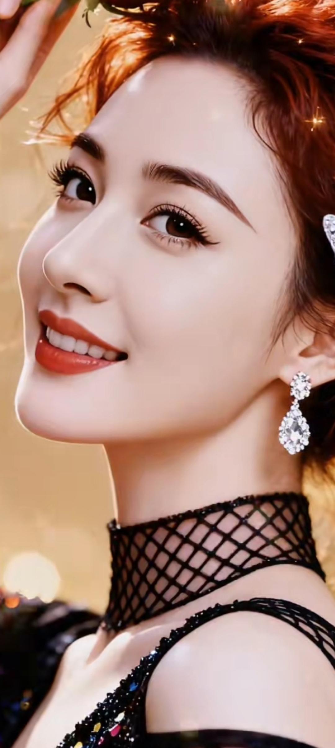 ✨闪亮红唇,优雅黑纱,闪耀耳环,迷人微笑✨