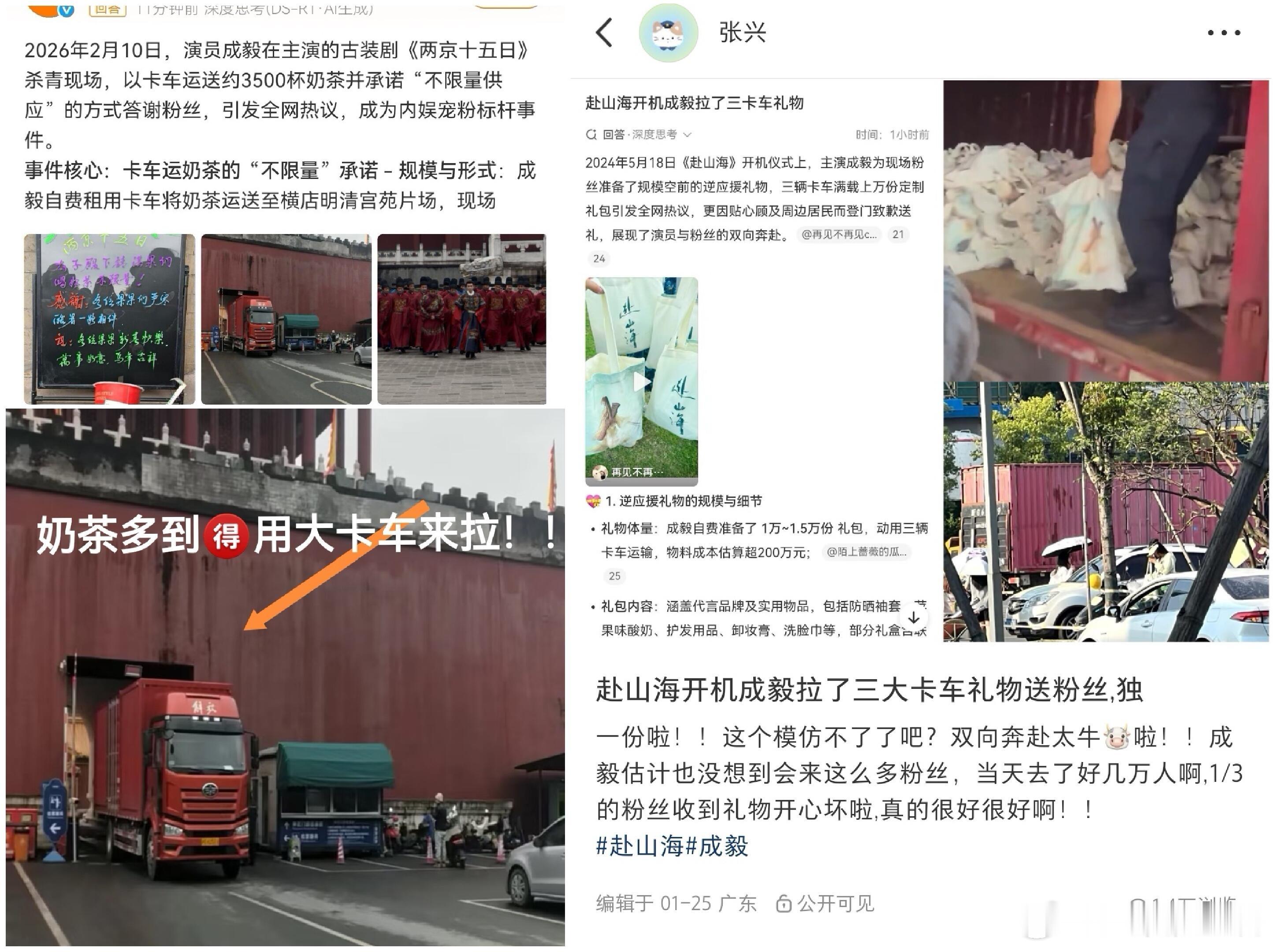 成毅又创造了横店历史第一,给粉丝的逆应援都是用大卡车拉的!!