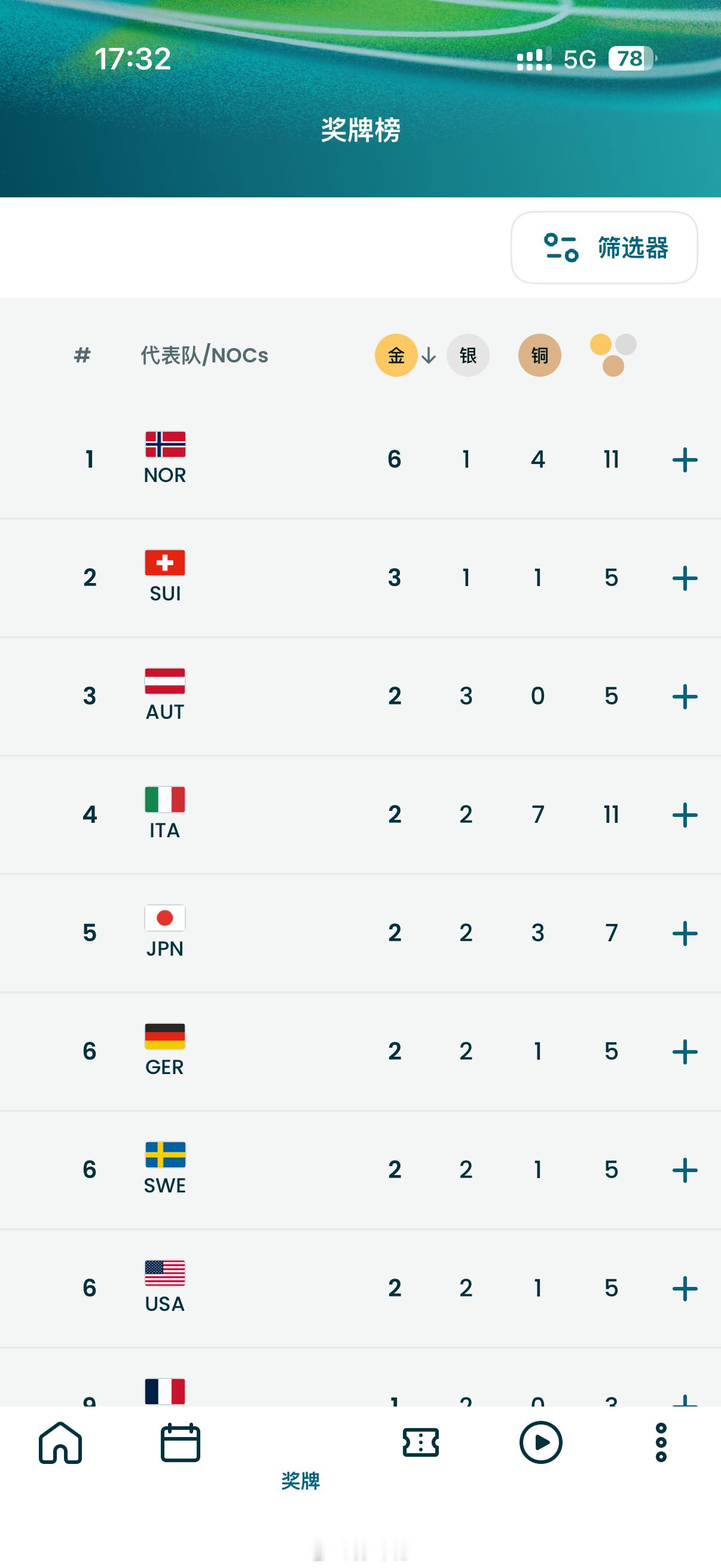 米兰冬奥会实时积分榜,挪威遥遥领先,目前中国第13