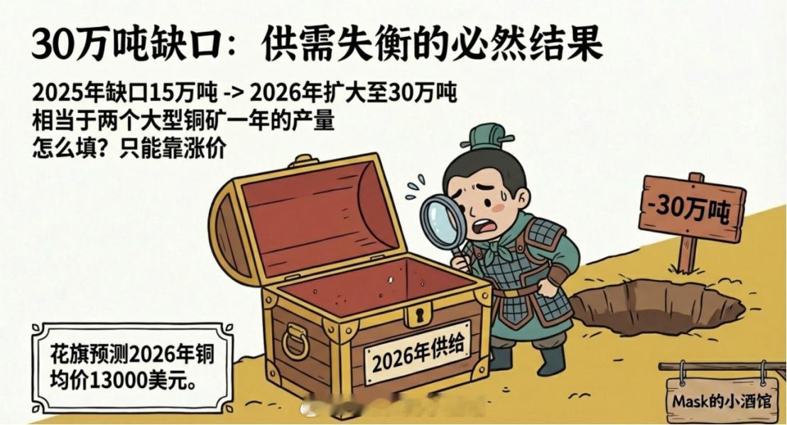 具体到铜铝锡这些工业金属,逻辑就更清晰了。花旗预测铜价2026年均价13000美元,小概率能达到15000美元,汇丰给的目标价甚至更高。为什么他们敢这么说?因为供需缺口摆在那里。国际铜业研究组的数据显示,2025年全球精炼铜短缺15万吨,2026年扩大到30万吨。