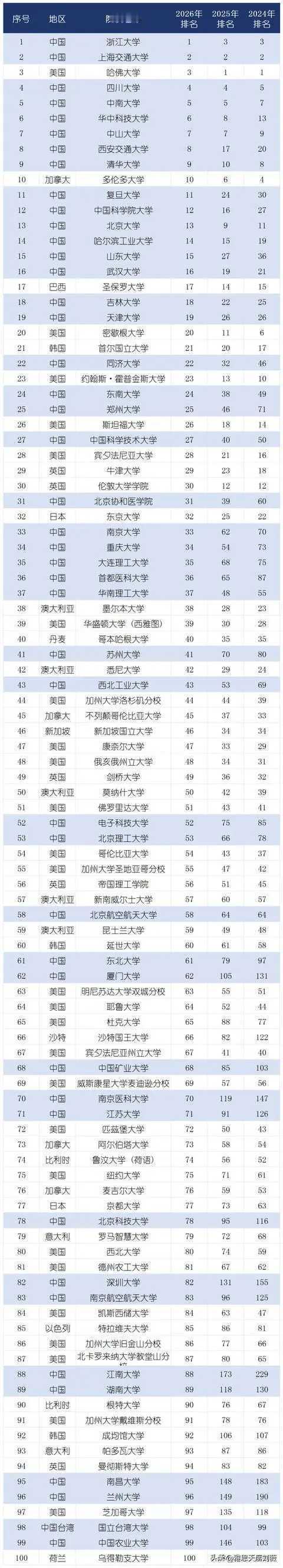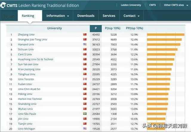 近日,2025 年 CWTS 莱顿大学排名正式发布,排前10名的居然有8所是中国的大学。 是不是很令人惊奇。 更令人惊奇的是,前一前二还是浙大和上海交大。哈佛只排第三,国内大名鼎鼎的清华排第九,北大排第十三,连前十也进不去。而以招收外籍留学生而名噪一时的山东大学,武汉大学,排名第十五,第十六。 前50名大学中,中国的大学就占据28名之多。