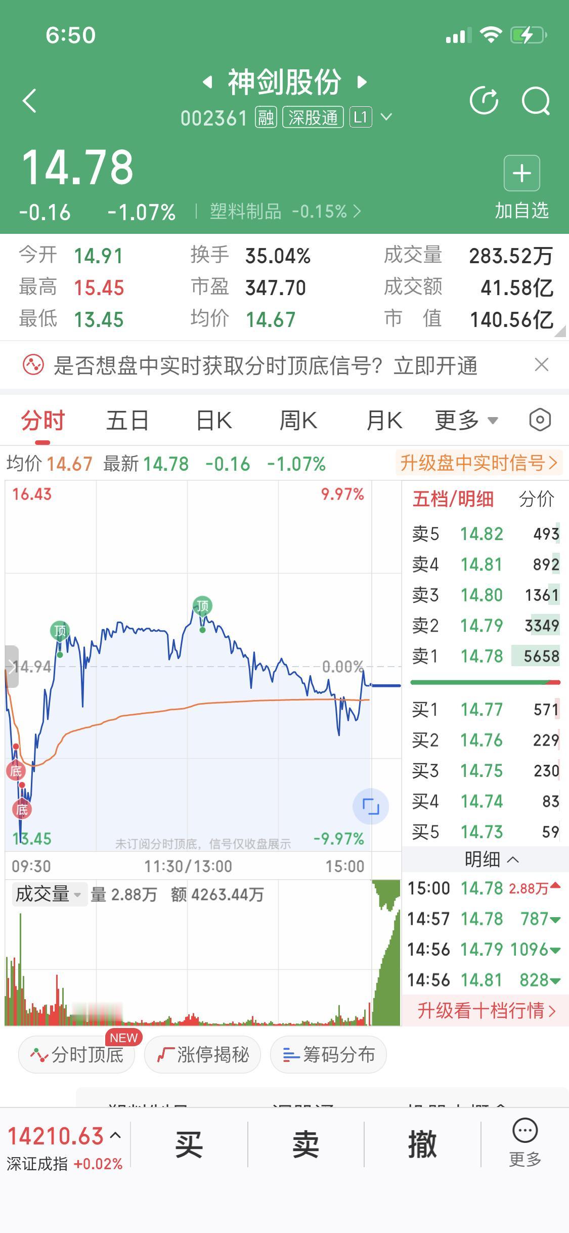 2月11日神剑股份这走势挺刺激,朱莉先砸后拉,最大跌幅都到水下7个点了,最后收盘负一个点。这股可不简单,不仅给火箭提供树脂,还有低空经济概念呢。要知道工信部五部门都发布促进低空经济发展的消息了。 之前2月5日商业航天概念回暖时,神剑股份还封涨停了,不过后来板块又回落,它还跌停过。现在就看今天它能不能起势了,大家都在猜测它会不会成为第二个巨力索具。市场这东西谁也说不准,说不定它就逆袭了呢,咱就拭目以待吧。