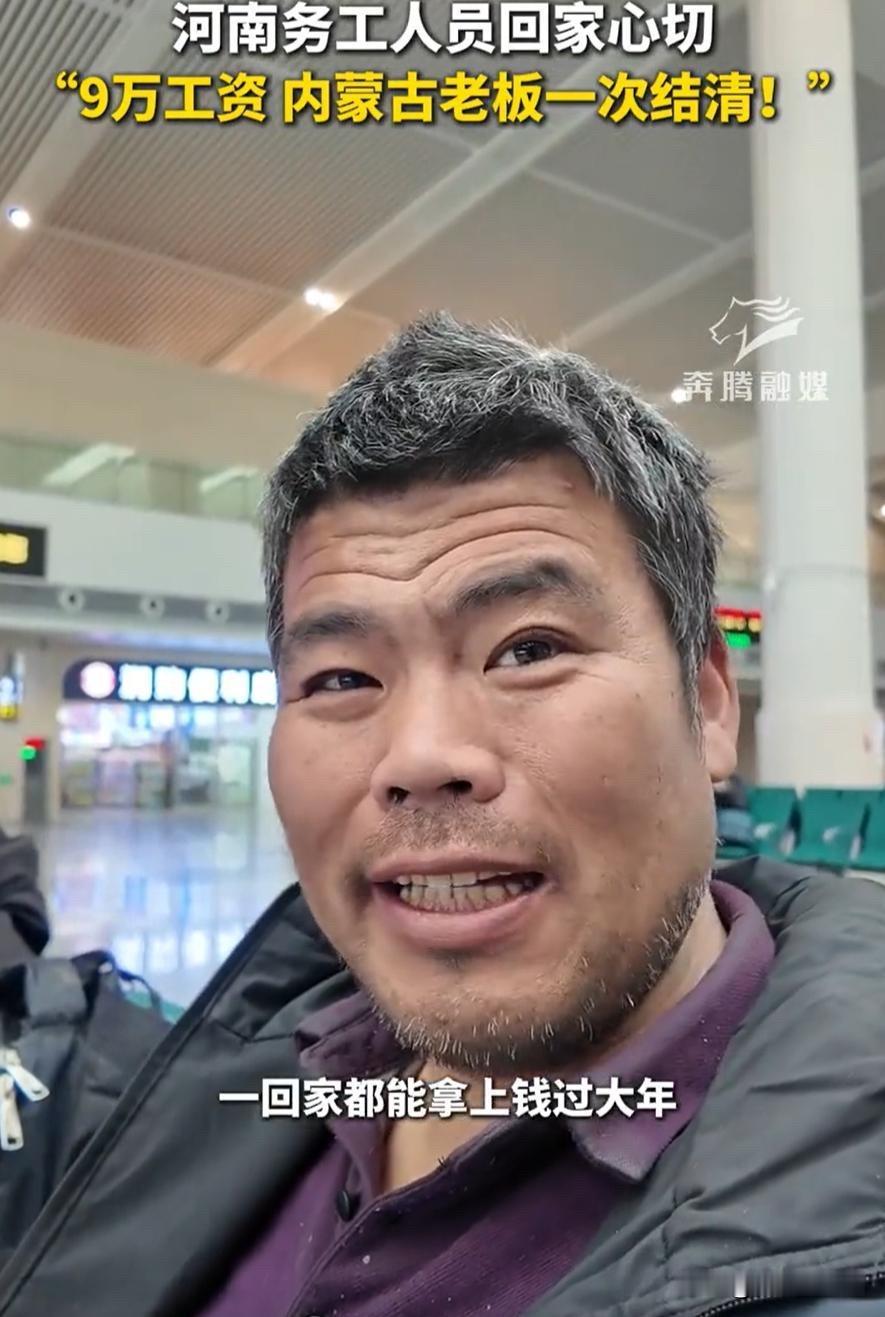 春运第一天,记者在火车站看到一名准备坐车回家过年的务工人员,结果万万没想到,大哥接受采访时两句话,竟然把自己的内蒙古老板给带火了,一句90000元工资一次性结清,让不少人看的羡慕不已 春运第一天就出爆款!火车站里,记者随机采访返乡务工人员,本是记录游子归乡的日常,没曾想,一位务工大哥的两句心里话,竟意外把自己的内蒙古老板带火全网。 尤其是那句“9万块工资一次性结清”,戳中无数打工人的心,网友们纷纷围观羡慕,直言这样的老板太难得。 2026年春运大幕正式拉开,全国各大火车站迎来返乡高峰,候车大厅里人头攒动,随处可见拎着行囊、归心似箭的游子,这位务工大哥便是其中之一。 他常年在内蒙古打工,从事工地相关工作,风吹日晒忙碌一整年,就盼着年底结清工资,安安稳稳回家和家人团圆过年。 当天,大哥已经收拾好简单的行囊,手里攥着返乡车票,正坐在候车区等候发车,脸上满是藏不住的喜悦,丝毫没有年底讨薪的焦虑。 记者见状,上前随机对他进行采访,询问他今年打工的收获、返乡的心情,没曾想大哥的回答,直接引发全网热议。 面对镜头,大哥语气朴实又真切,言语间满是知足。他坦言,自己今年在内蒙古跟着老板干活,全程踏实安心,不用操心薪资问题, 如今年底完工,老板直接将9万元工资一次性结清,一分都没拖欠,自己才能安安心心买上车票,开开心心回家过年。 除了说起工资结清的事,大哥还顺带提起老板的为人,称老板平时待人厚道,从不苛刻工人,干活期间若是遇到难处, 老板也会尽力帮忙,平日里不仅按时发放生活费,逢年过节还会给大家发福利,相处起来没有老板和工人的隔阂,更像是并肩打拼的伙伴。 原本只是一段普通的春运采访,没曾想,大哥这两句朴实的话语,被发布到网上后迅速走红,相关话题快速冲上热搜,不仅大哥收获了不少关注, 那位从未露面的内蒙古老板,更是被网友们疯狂点赞,一夜之间圈粉无数,成了大家口中的“良心老板”。 大哥坦言,自己之前也遇到过拖欠工资的情况,年底为了讨薪焦头烂额,根本没法安心过年,直到遇到这位内蒙古老板,才彻底摆脱了讨薪的烦恼。他还说,跟着这样的老板干活,心里踏实,哪怕辛苦一点也愿意,明年还想继续跟着老板打拼。 采访中,大哥还展示了自己的工资转账记录,9万元整的金额清晰可见,没有任何克扣。他笑着说,这笔钱不仅能给家里筹备年货,还能给老人孩子添点东西,剩下的存起来,足够支撑家里一段时间的开支,这一年的辛苦总算没有白费。 随着话题升温,网友们的讨论愈发热烈。有网友直言,太羡慕这位大哥,遇到不拖欠工资的老板,简直是打工人的福气; 也有网友感慨,这位内蒙古老板守住了诚信,不拖欠工人血汗钱,这份担当比什么都珍贵,活该他火。 还有网友分享自己的经历,坦言自己年底也曾被拖欠工资,对比之下格外心酸,更期盼能遇到这样有良心的老板。 也有网友表示,务工人员凭力气赚钱,按时结清工资本是天经地义,可这份本分,如今却显得格外难得,希望更多老板能向这位内蒙古老板学习。 其实,这位内蒙古老板或许从未想过自己会意外走红,他只是做了身为老板该做的事,却用诚信和担当,温暖了务工人员一整年的辛苦,也戳中了无数打工人的期许。对务工人员而言,年底能顺利拿到薪资,就是最踏实的幸福,就是最好的新年礼物。 一场普通的春运采访,一句朴实的话语,不仅见证了务工人员的踏实与知足,更彰显了一位老板的诚信与担当,这份跨越千里的温情,也成了这个春运最动人的风景。 对此,你们有什么看法,欢迎评论留言