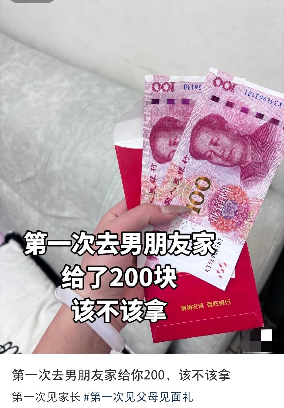 第一次去男朋友家,他父母给了200块,这算是重视吗?该不该拿?[what]