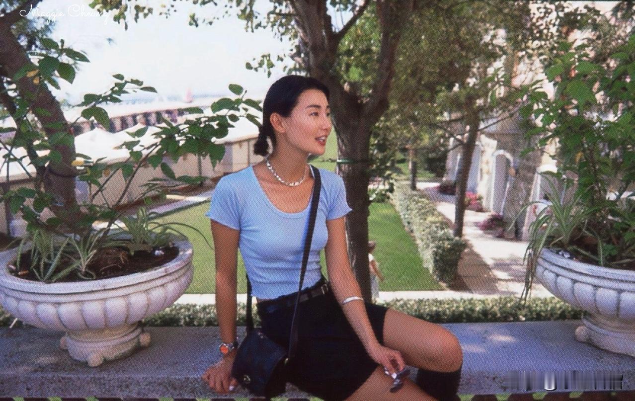 1993年,30岁的张曼玉的几张老照片。蓝色的紧身T恤,黑色短裤外加黑色的长靴,这打扮放到现在也不算过时。黑色斜挎包,银项链,银手镯,手腕上戴着的手表更显她的时尚品味。 感觉张曼玉属于那种五官分开并不出挑,但组合起来却非常有味道的明星。 (图片来源网络)
