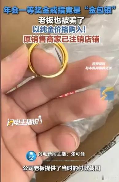 河南郑州,年会抽奖中,女子非常激动,一等奖的名单,居然念出她的名字,她中了一枚金戒指,老板说全公司就她一个这么好运,中了这个奖,结果她拿去重新打造,发现这枚金戒指居然是金包银。 又到了一年一度的年会,员工们最关心的,最让他们激动的,莫过于就是抽奖环节了,他们在年会吃过饭,就等待这个环节的到来。 当别的节目表演结束了,主持人喊出抽奖环节到了,台下一片掌声,个个往舞台上,翘首以待,希望新的一年好运,来到他们的头上。 一个个在心中都默念着,中奖的名单,名字就是他们的,他们看着主持人,念出一个个中奖名单,有人兴奋,有人失落,却又继续期盼。 即使是中了小小的奖,中奖的员工都满面春光,他们终于可以带着好运回家了。 很快到了让大家激动人心的时刻了,一等奖的中奖名单要揭晓了。 女子也特别的兴奋,听说这一等奖的奖金是一枚金戒指,价值2196元,差不多是她半个月的工资了,她也一心想要一枚金戒指,要是这个好运落到她头上,她就心满意足了。 主持人宣布了,中奖的名单,正是女子,女子听到自己的名字,仿佛在做梦一般,自己想得到什么就是什么,她有点不敢相信,直到主持人又再一次念她的名字,她才兴奋地走上舞台。 舞台上,她接过一个红色的小盒子,里面正是她想要的金戒指,老板说这个奖只有一个人,中奖的只有女子一个,女子真的是很幸运。 老板这么一说,女子更是乐得笑开怀,仿佛她就是最幸运的一个人。 女子回到自己的座位上,马上打开盒子,看着里面金光闪闪的金戒指,她爱不释手,马上就把戒指带到自己手上,这戒指戴在他头上刚刚好。 从此女子便把戒指戴在手上,她要让这份好运伴随自己一辈子,她一戴就戴了两年。 两年后,她觉得这个戒指太小了,而且款式也不是她喜欢的那样,她就想换一个大的戒指,但又不想好运就这么离开她。 正好她还有另外一枚戒指,也是比较小的,这两枚戒指重新打造,就可以再打造一枚大戒指,她决定,把这两枚戒指融掉,重新打造。 她来到了一个金店,把这两枚旧戒指递给老板,让他帮忙重新打造。 重新打造金戒指有一个流程,在打造金戒指之前,要将金子表面的一些灰尘杂质,把一些不属于金子成分的东西烧掉。 老板跟女子说这些,女子没有意见,两枚金戒指就烧了,烧的过程中,金戒指没有变色,一切符合金戒指的应有的表现。 甚至在用光谱仪检测纯度时,老板也没有检测出什么问题,老板确定这是足金金戒指,然后就进行了两枚戒指熔炼的工序。 而当这两枚戒指在一起熔炼的过程中,熔炼出来的物质居然变成了白色。 “这是金包银啊,不是金戒指!”老板惊叹道。女子看见自己的金戒指变成了金包银,也十分震惊,她告诉老板,这是她两年前,在年会中的一等奖,不可能会是金包银。 金店老板告诉她,这个是造假手法是很正常的,就是用廉价的金属,在外面包一层黄金,让别人检测不出来,就以为是金戒指。 老板这么一解释,女子感到不可置信,难道两年前的年会有猫腻? 她马上找到自己公司的老板,她说她在两年前,年会中的一等奖的金戒指是金包银,这是怎么回事? 老板一听也震惊了,马上提供了当时的付款截图,价钱是2196元,按照这个价钱,确实可以买一枚纯金金戒指。 那这又到底是怎么一回事,这估计只有店家才知道,他们就联系了当时卖这枚戒指的店家,但是这个店家已经注销了,维权非常困难。 这是年会中的戒指,现在女子真的是,让老板重新给一枚金戒指不合适,去找店家也无门。 她的好运就此离她而去,对于女子来说,这不是一枚金戒指这么简单,而是她对这枚金戒指的感情,以及期待都没有了,让她非常落空,也让她难受。 很显然女子遇到的这种情况,如果她公司的老板也是不知情的,那么原本的店家已经涉嫌了欺诈行为。 《消费者权益保护法》第55条规定:经营者提供商品或者服务有欺诈行为的,应当按照消费者的要求增加赔偿其受到的损失,增加赔偿的金额为消费者购买商品的价款或者接受服务的费用的三倍。 只要店家涉及欺诈行为,就可以要求进行退一赔三,只是现在这个店家已经注销了,维权真的很难。 那么你对女子遇到的这件事有何看法呢?