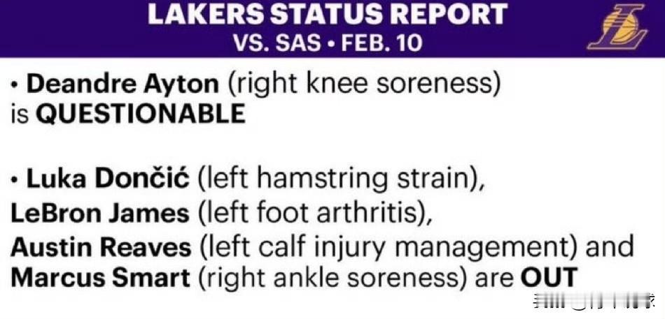 不争了!詹姆斯看开了啊! 今天,湖人队将坐镇主场背靠背迎战马刺队。本场比赛,詹姆斯因右脚关节炎将缺席,这将是他本赛季缺席的第18场比赛,已经失去了评选联盟各大奖项的资格。这样一来,詹姆斯职业生涯连续21个赛季入选最佳阵容的历史记录将在本赛季终结。 詹姆斯已经年满41岁了,在这个年纪最重要的是保持健康,为赛季后半程和季后赛做准备。本赛季的詹姆斯明显看开了,赛季初就因为坐骨神经痛缺席了12场比赛,后面也是背靠背选择性出战,今天缺战马刺队后伤缺场次早早的到了18场,后面肯定还会缺席部分比赛。可以发现,本赛季的詹姆斯彻底不争了,也争不动了,能保持健康上场比赛就行了。