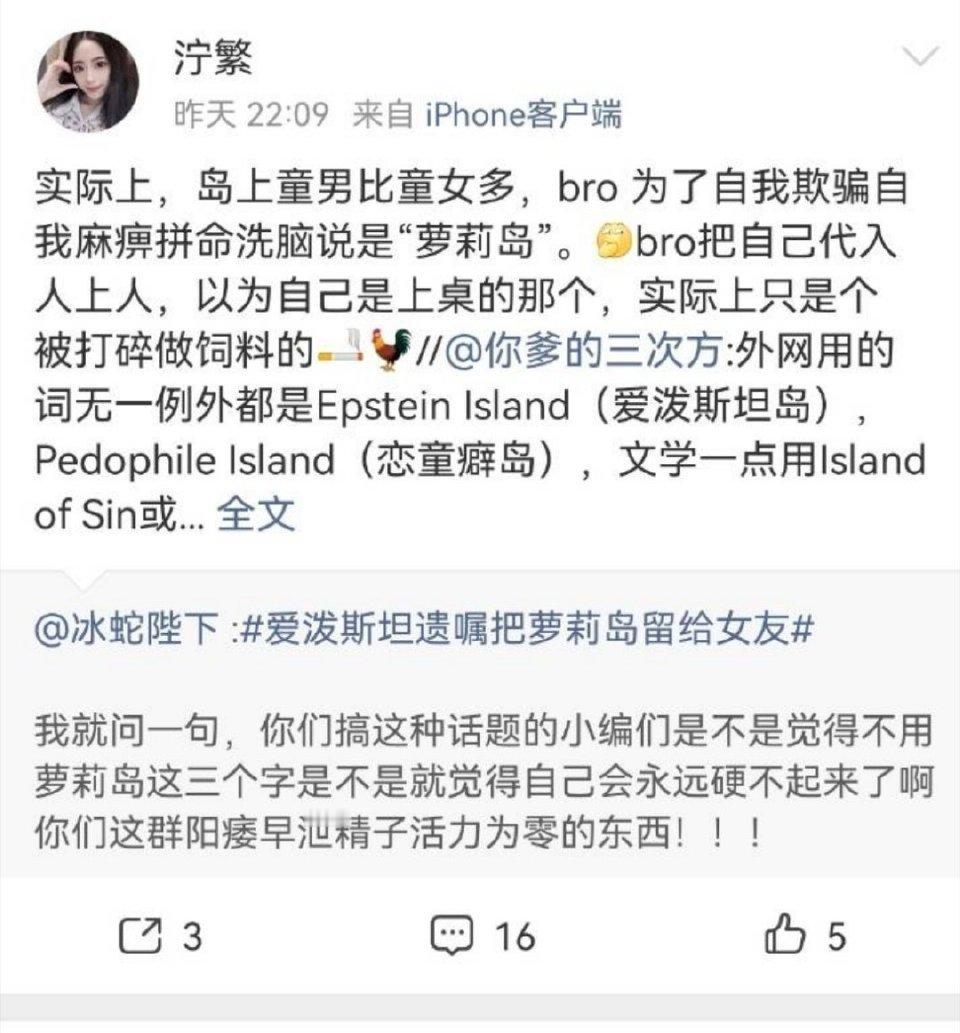 就算有些人真的对“萝莉岛”这个词不满,也应该谴责用Lolita island这个词的外国人,甚至这个词的灵感来源小说《洛丽塔》都有很大的美化恋童癖的嫌疑。爱泼斯坦极其喜欢《洛丽塔》这本小说,到现在也没有几个博主出来谴责《洛丽塔》。