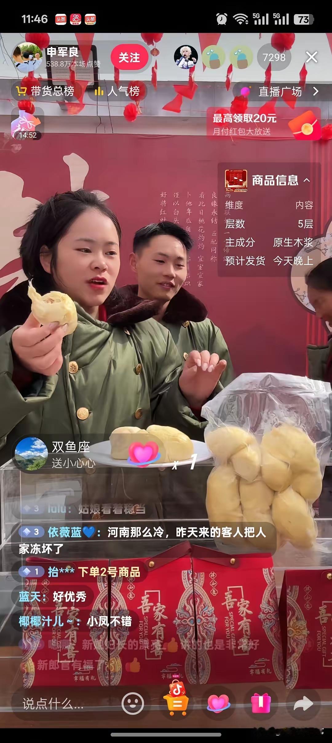 申聪结婚的第二天, 趁这波流量 ,他的媳妇一马当先, 站在镜头前开启了直播带货 , 媳妇在直播间里落落大方 ,一点都不怯场 ,讲解的也非常棒 ,结婚是人生的一大喜事,说实话也特别累 ,第二天应当好好休息才对, 但是这个媳妇也够拼够能干的 ,努力改善现有的家庭状况 ,申君良娶了这样的媳妇是他们的福气 。