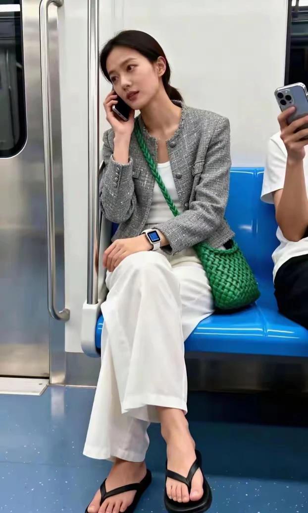 如果你们在地铁上遇到这样一位这颜值让人惊艳的女子!到站舍得离开吗? 可以说这个美女是天生丽质,从头到脚体态匀称,属于那种耐看型的上层人物,这身材不做模特可惜了,
