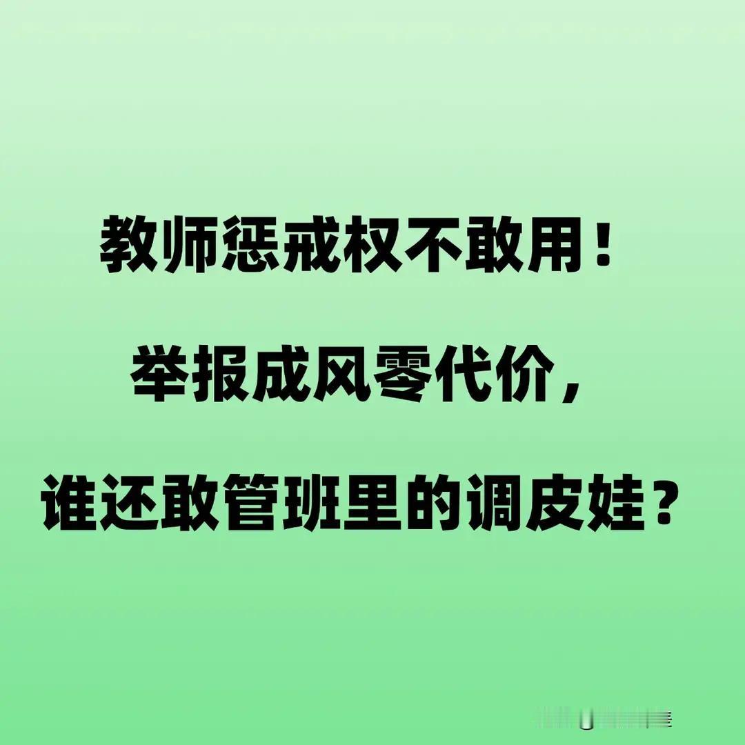 教师惩戒权不敢用!举报成风零代价,谁还敢管班里的调皮娃? 这篇文章深刻揭示了当下中小学教育中存在的几大问题:老师因担心举报和投诉而不敢管教学生,导致课堂纪律松弛,教育效果受影响;恶意举报泛滥,损害老师权益,扰乱正常教育秩序;以及公众对教育惩戒的误解,将合理的惩戒行为误认为体罚或暴力。 主要观点总结如下: 老师面临的困境:老师本应承担管理和教育学生的责任,但由于家长和社会的“零容忍”态度,以及举报渠道的便利和无责任追究机制,许多老师变得“明哲保身”,不敢管、不愿管,只能采取“自我保护”的措施。 举报乱象:举报变成低成本、无后果的“武器”,许多无理取闹的举报占据大量行政资源,严重影响教师的心理和职业幸福感。 惩戒与体罚的界限:国家对惩戒行为已有明确规定,合理的批评和管理手段不等于体罚。惩戒是教育的必要手段,关键在于方式方法。 后果:老师不敢管,最终受害的是孩子——课堂秩序差、规矩意识薄弱、优秀老师流失,教育质量下降。 解决方案:明确教育惩戒规则,建立老师“容错机制”,严惩恶意举报,促进家校良性沟通,形成良好的教育环境。 核心建议: 政府和相关部门应出台支持老师的政策,保护教师正当惩戒权。 社会应理性看待教育惩戒,避免误解和偏见。 家长应理解教育的本质,配合老师共同育人,而非对立、举报。 教育环境要公平、公正、透明,让老师可以安心教书、学生真正受益。 结语: 只有当老师敢于管教、家长理性沟通、社会理解支持,教育才能回归本源,培养出真正有素养、有责任感的下一代。我们每个人都应为营造良好的教育环境贡献一份力量。