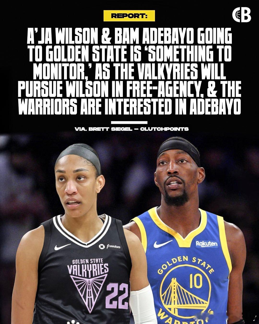 ClutchPoints 记者Siegel表示:“正如我们过去一年报道,阿德巴约一直是勇士感兴趣的球员,而且他与吉米巴特勒仍保持着非常紧密的关系。消息人士称,四届WNBA常规赛MVP阿贾威尔逊将成为拉科布和女武神队在自由市场上的重点目标。这对勇士为什么重要?因为威尔逊和阿德巴约已经交往多年,这两人成为金州两支球队的门面人物,确实是一件值得持续关注的事情。”