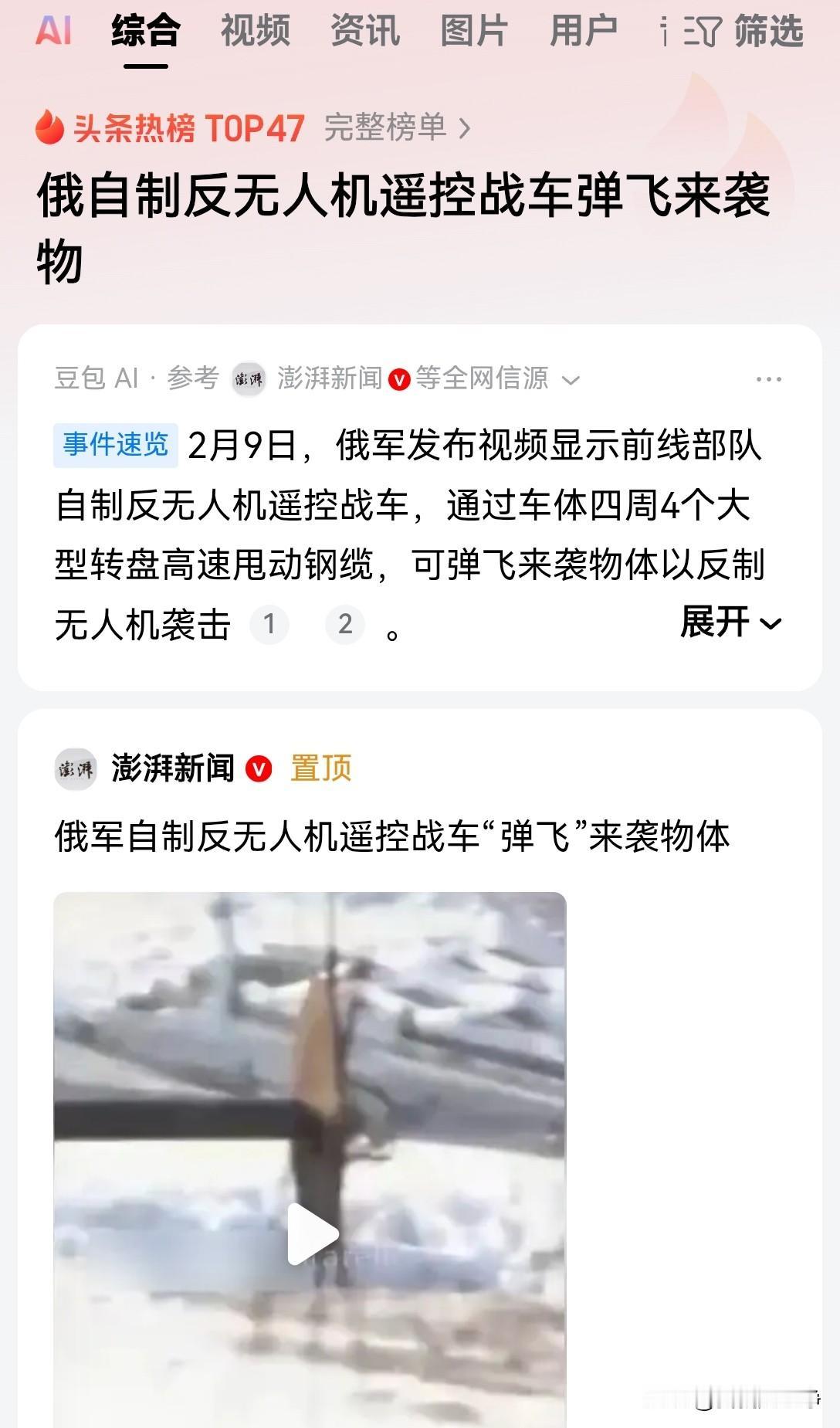 无人机战术真的深深的改变了人类的战争史,这种武器廉价又好用,各种属性正好处在一个平均值上 比无人机威力更大,精准度更高,航程更远的武器装备当然有了 但是没有一样比无人机便宜,也没有任何一样比无人机的产量更高 那么比无人机更廉价的武器装备有没有呢?当然也有了 可是这些更廉价的武器装备却没有无人机的威力大,精准度高,航程更远 大家看看,他正好卡在一个平衡点上 又便宜又好用,关键是很容易量产 4年的俄乌冲突,交战双方被无人机折磨的已经快崩溃了 看看最新的消息吧,俄军又出现天才的创意了 他们发明了一种新型的反无人机装置 说白了,就是一辆战车,五面都装一个旋转的钢缆 电机带动一节钢缆拼了命的旋转 任何无人机撞上去都会被瞬间弹飞 就算无人机爆炸也没有关系,毕竟钢缆和后面的装甲目标还有一定的距离 爆炸的威力已经被距离大大的缩减了 这也算是一种创意了,虽然可操作性不强,但是也是一种无奈的办法 这4年的战争中,俄乌双方搞了很多渔网来防无人机,或者说在战车上安装好多钢筋,像刺猬一样的防无人机 他们发动想象力,用尽一切办法去解决这个问题 其实无人机这个东西真的没有什么有效的克制方法 最好的解决手段就是进攻是最好的防御 你保证自己的无人机比敌人的多,性能更优越,成本更低廉,这就够了 战胜你的对手,把恐惧深深的烙印在他的灵魂里面 这比被动防御要强百倍