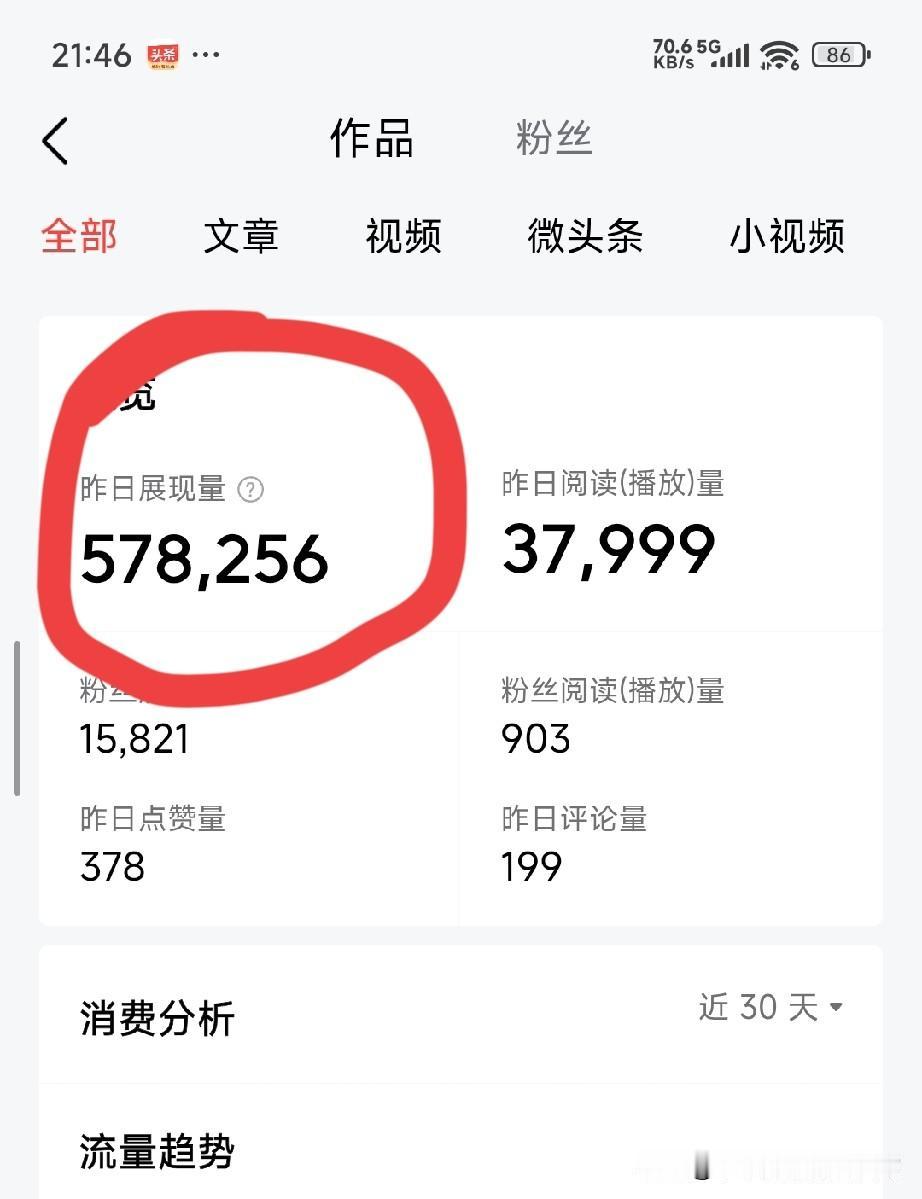 昨天50万推荐量的收益出来了 我被头条狠狠上了一课 昨天一条微头条爆了,后台显示57.8万展现、3.8万阅读,我激动得一晚上没睡好,以为能赚个大几百。 结果今天一看收益,只有11.75元。 我反复刷新了三次,确认不是系统bug。那一刻,所有的兴奋瞬间被浇灭。 这不是我第一次遇到这种情况。之前有一条130万播放的视频,收益也才50多块。现在的头条,流量和收益早就不成正比了。 很多新手还在被“日入过千”的神话忽悠,以为随便发点东西就能赚钱。其实,大部分创作者都是在用爱发电。 我算了一下,昨天那条爆文的千次阅读收益只有0.29元,还不够买瓶矿泉水。 你在头条的千次阅读收益是多少?评论区晒出来,让大家看看谁是“天选之子”。