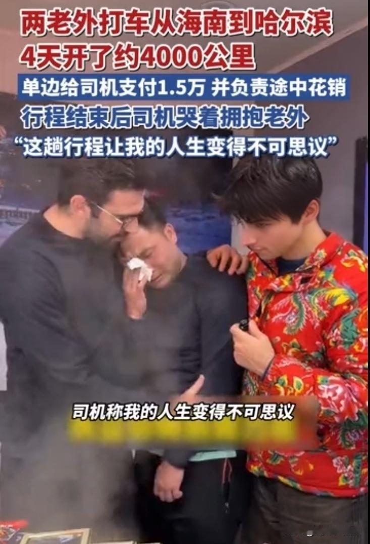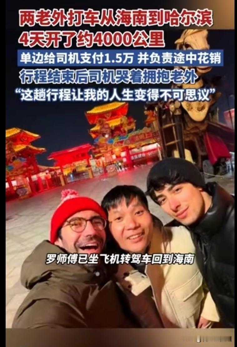 北大洋网红vs初中司机:4天4000公里,一场哭上热搜的逆袭之旅 朋友们,今天必须跟你们唠一个最近刷爆全网的神奇操作——两个老外,从海南打了个出租车,一路杀到哈尔滨,狂奔4000公里! 更绝的是,他们带上了一位39年没出过岛的海南司机罗师傅,一路解锁了人生无数个“第一次”。这故事,比你刷的剧还上头! 这单到底有多疯狂? 高佑思,一个北大毕业、坐拥800万粉的以色列网红,带上他的法国朋友,在海南街头开始了这场“地狱级”打车挑战。你敢信吗?连问十几个司机都被拒,最后接单的,是初中毕业、开了半辈子出租的罗师傅。 一个敢想,一个敢接,反常识的组合瞬间拉满戏剧张力! 4天狂奔,细节比剧本还戳人 出发就高能:车要乘轮渡跨琼州海峡,结果半路车还坏了,临时换车继续冲!从桂林山水到北京天安门,再到哈尔滨的冰雪大世界,罗师傅的朋友圈一路直播式更新——“第一次看到雪”“第一次站在天安门前”,这个土生土长的海南汉子,像孩子一样红了眼眶。最真实的是,高佑思提前预支了1.5万费用,沿途食宿全包,没刻意煽情,却处处是人情味。 为什么全网破防? 因为这不是网红作秀,而是一个普通人的“折叠人生”被突然打开。罗师傅39年的日常是方向盘与海岛,这趟旅程却塞满了跨越南北的震撼。他在冰天雪地里手舞足蹈,在天安门前郑重拍照,跟家人视频时哽咽:“这辈子值了。” 那种最朴素的圆梦感,狠狠戳中了我们每个人心里那点“不甘平凡”的念想。 你以为故事到这就结束了?不。回海口后,罗师傅的生活似乎“回归原样”,但他笑着说了句:“我这辆车,现在装满了整个中国。” 你看,真正打动人的从来不是远方,而是那颗被点燃的、依然滚烫的普通人的心。 所以啊,我们追捧的不是4000公里,而是那束忽然照进平凡生活的光。 你呢?有没有哪个瞬间,也想为自己“疯狂”一次?评论区聊聊,点赞关注,一起见证更多温暖真实的故事! 4000公里打车奇迹 平凡人的高光时刻 洋网红与出租车司机 真实自有万钧力