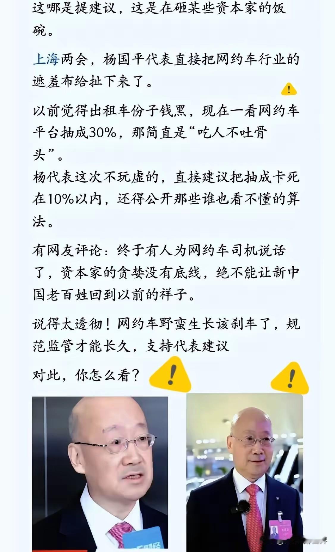 终于有人大代表犀利批判这个问题了!资本家的贪婪嘴脸被人大代表毫不客气的撕下来了!太解气了! 老百姓憋在心里很久的话,终于有人在正式场合大声说出来了。这些年大家看得太清楚,有些资本早已忘了初心,把赚钱当成唯一目的,把社会责任抛到九霄云外。 他们一边享受着时代红利和政策支持,一边疯狂压榨普通劳动者。加班成常态、福利能减就减、工资能拖就拖,把员工当成消耗品,把市场当成提款机,赚得盆满钵满,却不愿承担半点责任。 更让人心寒的是,有些资本赚够了钱就想着往外跑,偷税漏税、转移资产,对国内的民生、就业、公益漠不关心。他们用资本操控舆论,用价格收割百姓,用优势挤压小企业,把行业搞得乌烟瘴气。 普通人每天辛苦奔波,房贷、车贷、育儿、养老压得喘不过气,可有些资本家却在不断刷新底线。这种强烈的反差,早就戳中了无数人的痛点,也让大家对无序扩张的资本充满不满。 人大代表敢直言、敢亮剑,恰恰说明高层早已看清问题所在。资本可以逐利,但不能嗜血;企业可以做大,但不能忘本。没有社会的稳定,没有员工的付出,没有百姓的支持,再大的资本也只是空中楼阁。 国家一次次出手整顿,就是要给资本划红线、立规矩,让资本服务于民,而不是压榨于民。谁无视百姓利益,谁挑战公平底线,谁就一定会被时代抛弃。 这次发声之所以让大家拍手称快,就是因为说到了老百姓的心坎里。我们支持勤劳致富,支持合法经营,但绝不纵容贪婪无度、为富不仁。 只有让资本有敬畏、让企业有担当、让劳动者有尊严,这个社会才能真正公平,老百姓才能真正过上舒心日子。 各位读者你们怎么看?欢迎在评论区讨论。
