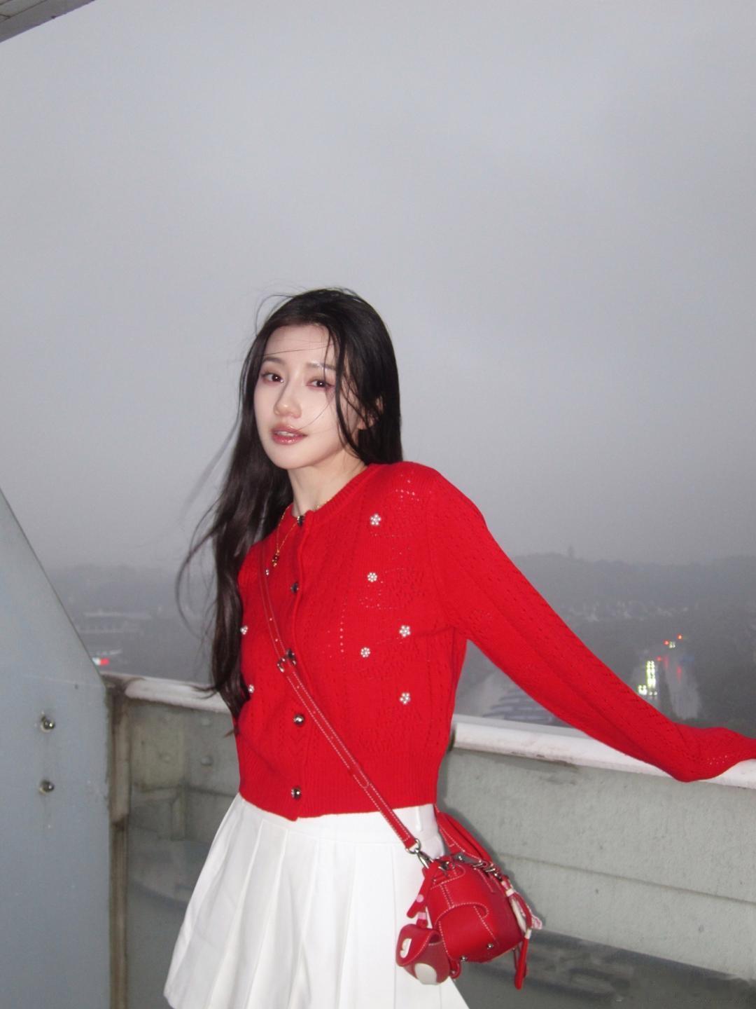薄雾漫山,风拂发梢,王鹤润一身红白撞色穿搭立于山间观景台,在朦胧烟岚里,撞出了最鲜活的新春氛围感。