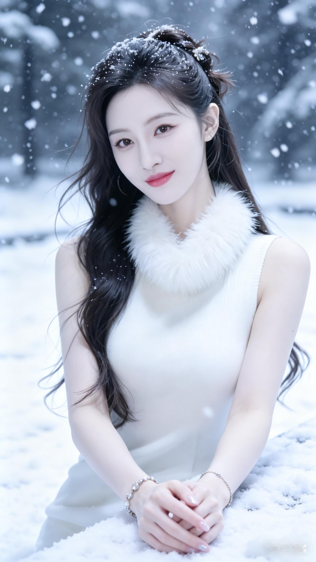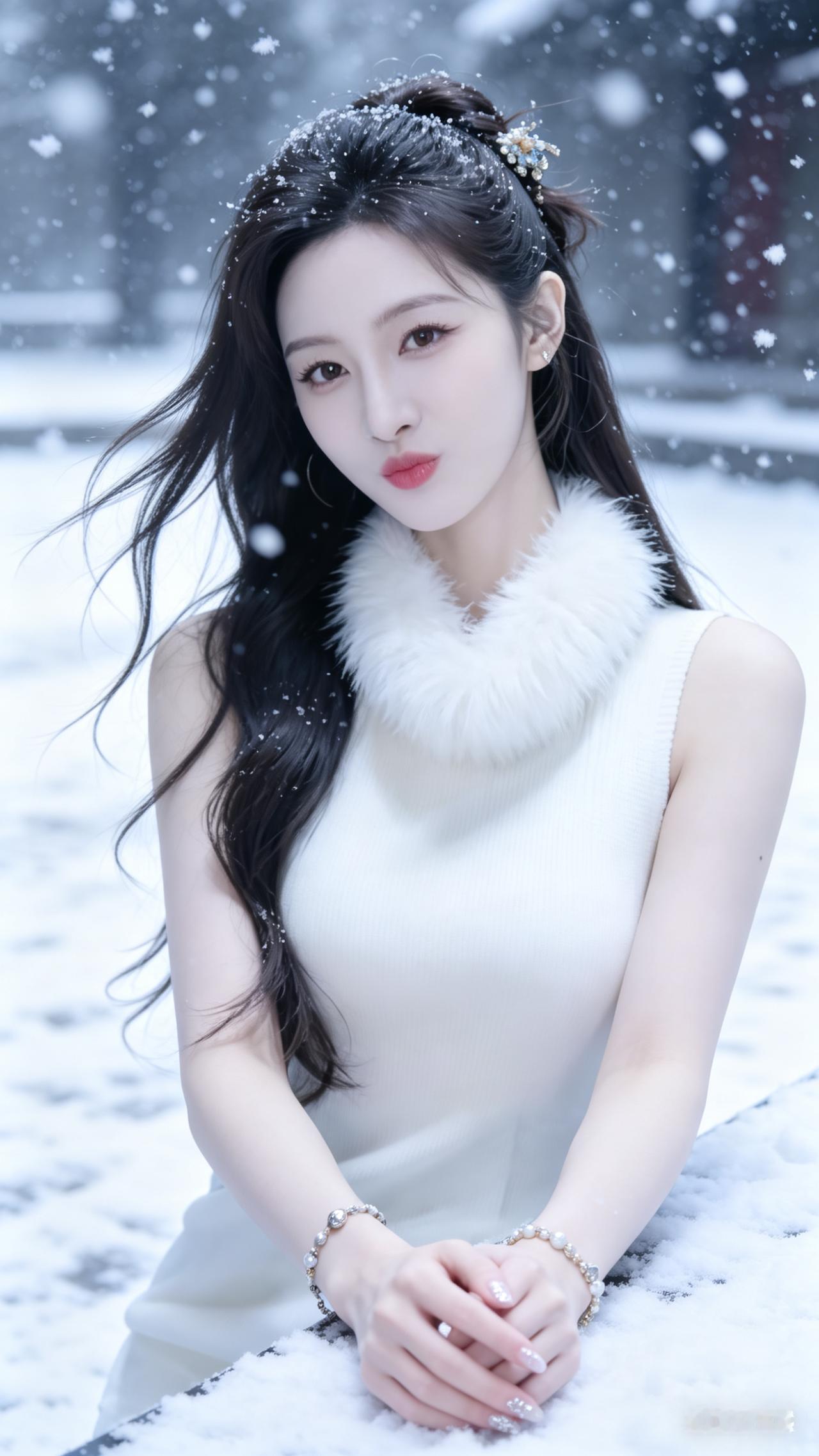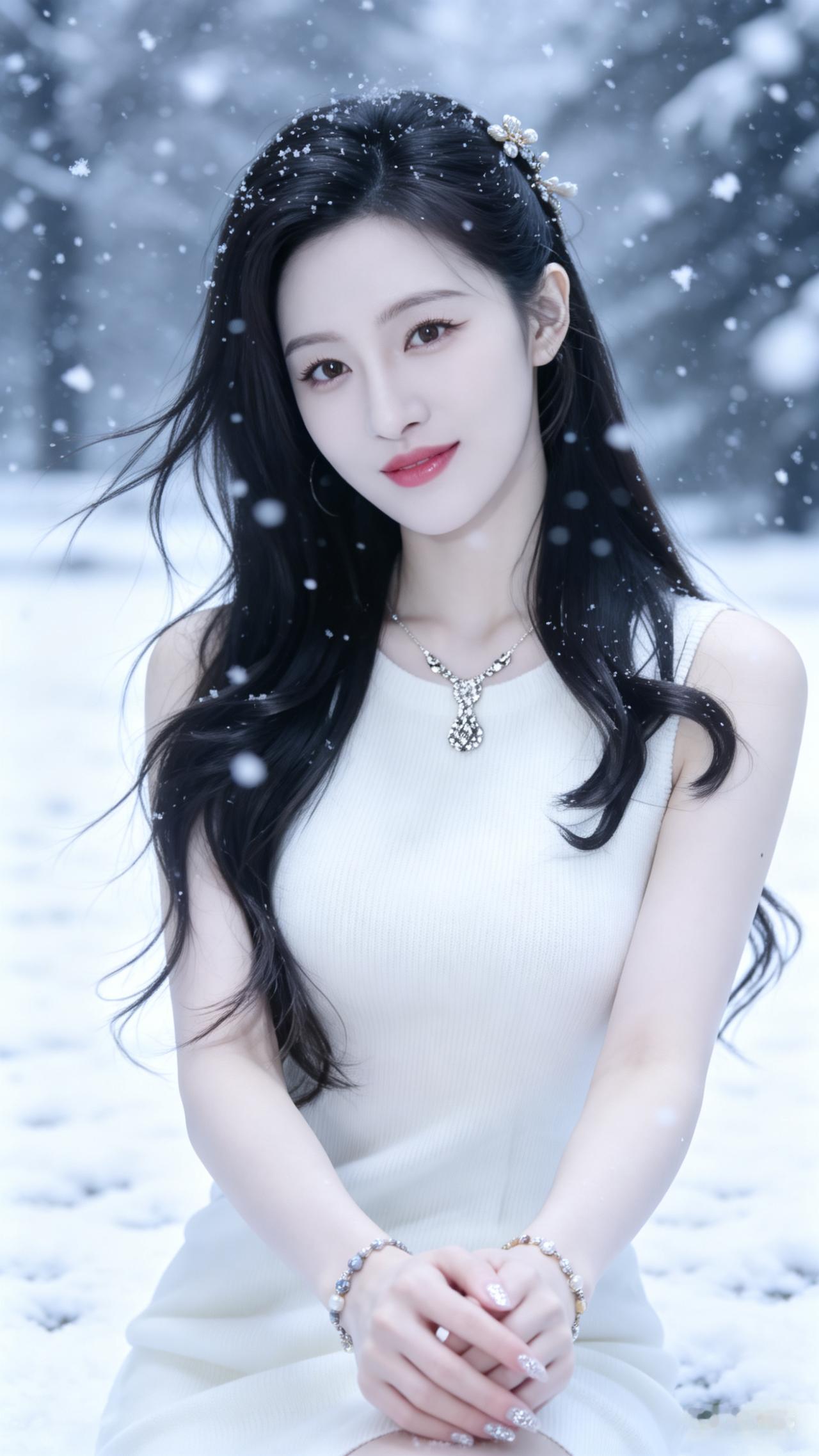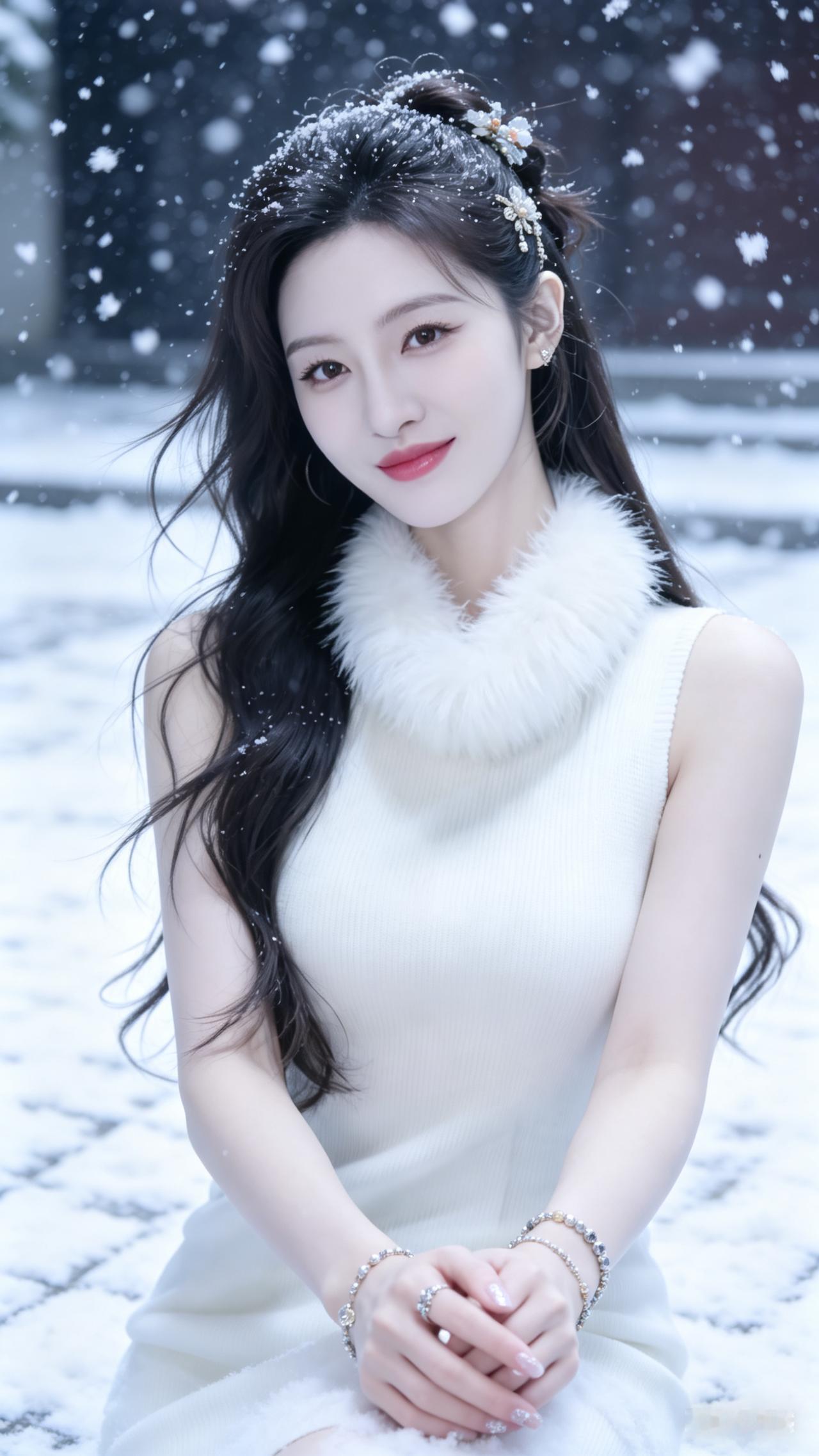 冬日暖阳下的甜美少女,黑丝绒围巾与耳环相得益彰,温柔微笑,尽显优雅魅力。