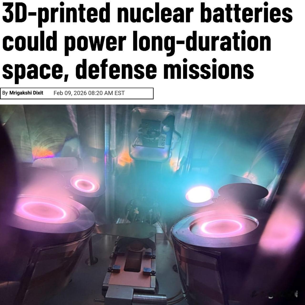 澳大利亚刚刚发布了可为设备供电数十年的3D打印核电池。 该项目获得了价值 180 万澳元(126 万美元)的资金 ! 澳大利亚工程公司 entX 与阿德莱德大学合作开发了 GenX β伏发电机,这是一种采用 3D 打印技术制造的核电池,旨在提供超长寿命的电力。 与依赖化学反应的传统电池不同,GenX 采用β伏转换技术,利用半导体结将放射源发射的β粒子的能量直接转换为电能,无需充电或维护即可提供低但持续的电力长达多年。 这项突破性技术将增材制造与纳米级金属、金属氧化物和半导体层相结合,从而实现了更高的功率密度和集成辐射屏蔽。 该项目旨在14个月内实现预商业化生产,目标应用领域包括太空任务、水下传感器和远程防御系统。