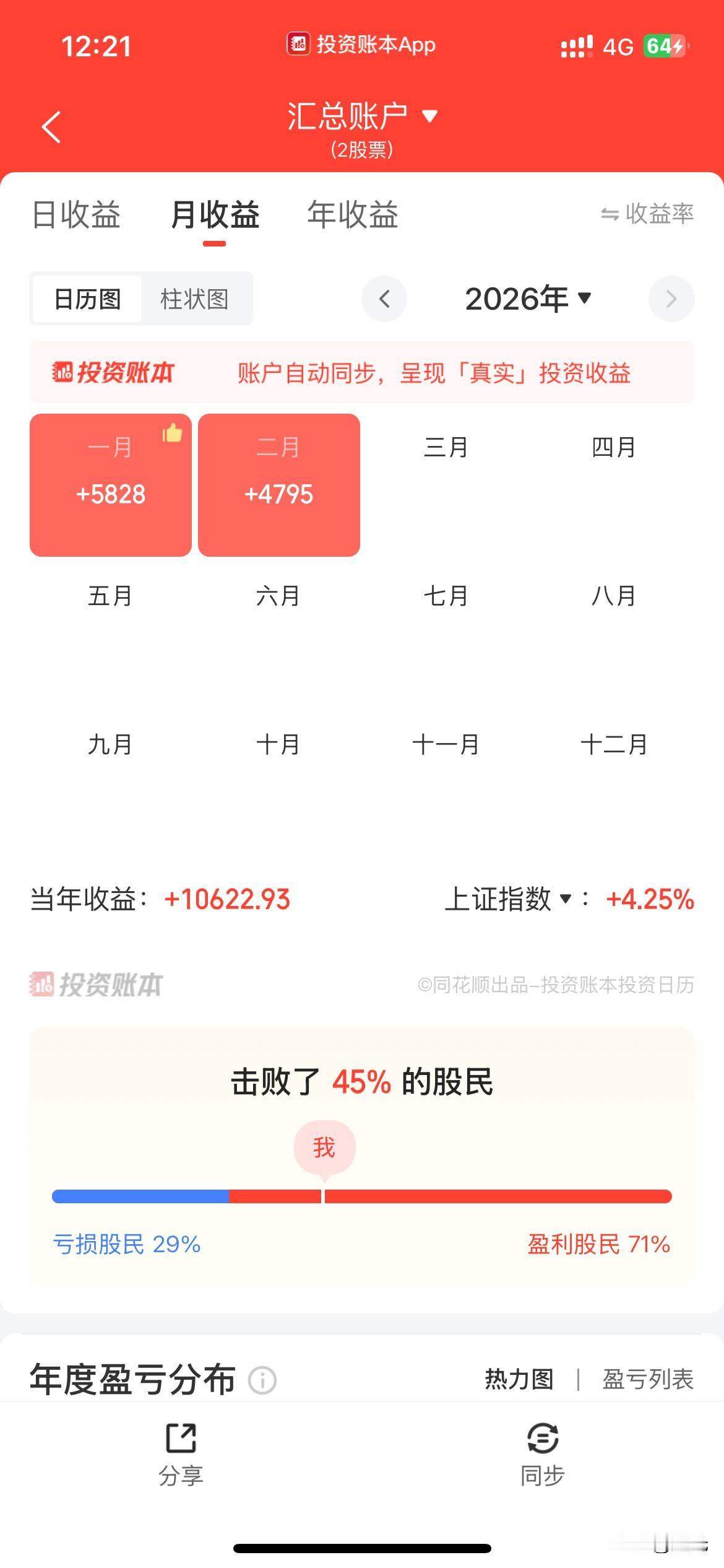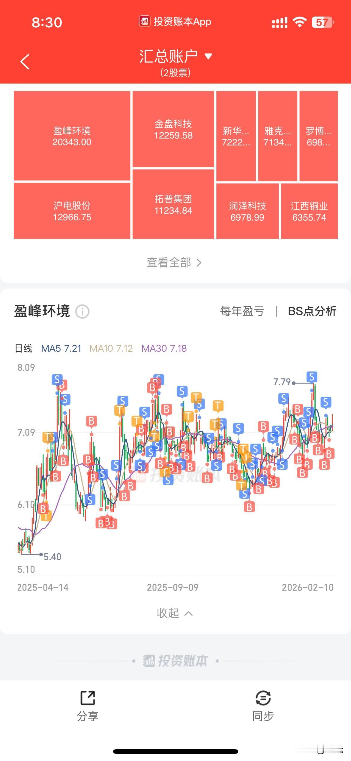 距离春节越来越近了,股市也是感觉到春节的气氛,交投清淡[呲牙]。最近也没有什么主线,杂乱无章。我还是坚守自己的认知,做点熟悉的股票,收缩防线。目前主要以金盘和盈峰为核心做点高抛低吸。另外做点低位超短线品种。仓位在16.8%。今天高位抛了200股金盘,清了华友。盈峰挂了2000股7.38的卖单,目前没有成交。今年依然保持每月都是盈利状态。 我看了下历年数据。盈利最高的股票竟然是不涨横盘很久的盈峰,过2万了,看来高抛低吸也是可以赚钱的,不过一定要有非凡的耐心才行。
