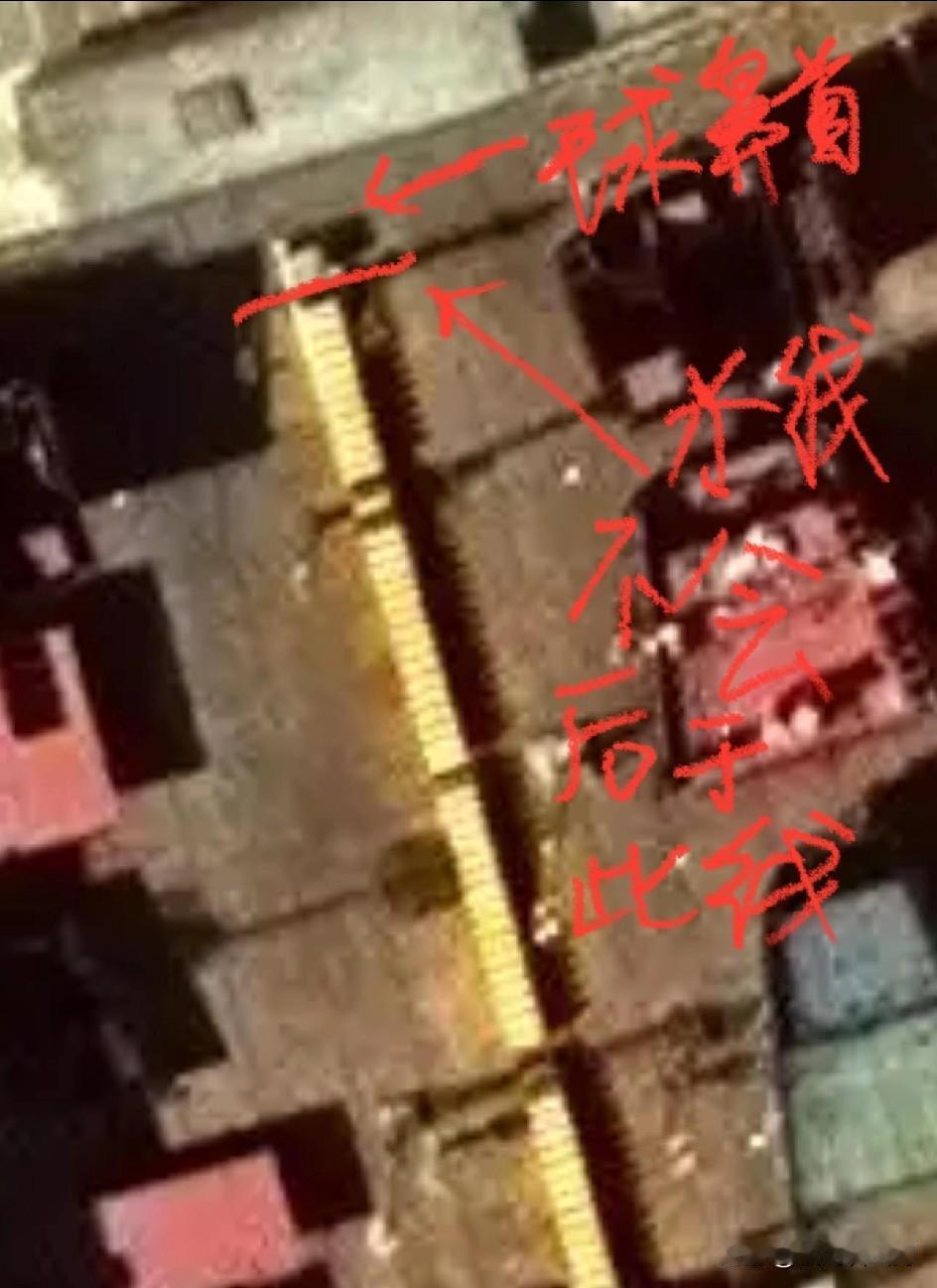 水线320+应该稳了 从最新画面能清晰看到,新舰的柱状支撑已布设至中轴墩最顶端约10米处,且支撑呈内凹弧形排列。 中轴墩每隔一段就有连通左右侧的过道,而最前端数米的墩体比后方更高,这大概率是为球鼻首前端弧形段设置的支墩,当然也可能是墩上布置了观瞄检测后方位移的专业设备。 新舰的水线位置不会后于第一组两侧支墩,这也为320米+的水线长度提供了关键依据,此前的参数猜测终于有了更实的细节支撑,新舰的轮廓也愈发清晰。