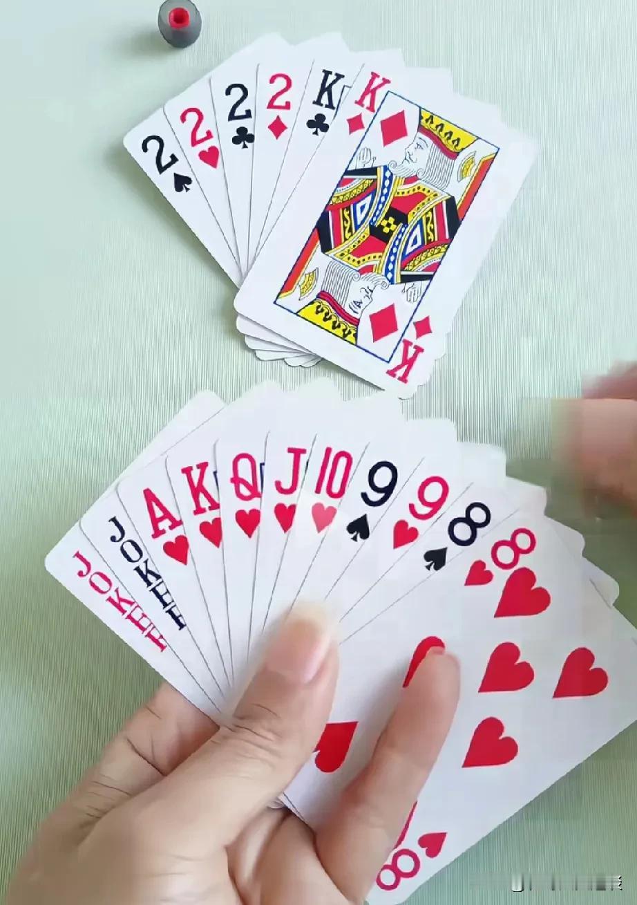 这副牌看似难赢,但实际上非常好赢对手。对方4个2、两个k,我方手里有一个顺子,对8对9,还有一个王炸。对方看似很强大,实际上我们可以稳赢他。你可以先出一个八或者一个九,他要如果不要好说,我们继续出单,如果说他要用一张k来压住你,我们用A来回他。 后边我们可以继续出单牌,或者出顺子。这个时候他要是压制你,我们可以直接上王炸,我们就赢了。我们千万不能做的事,出一对。