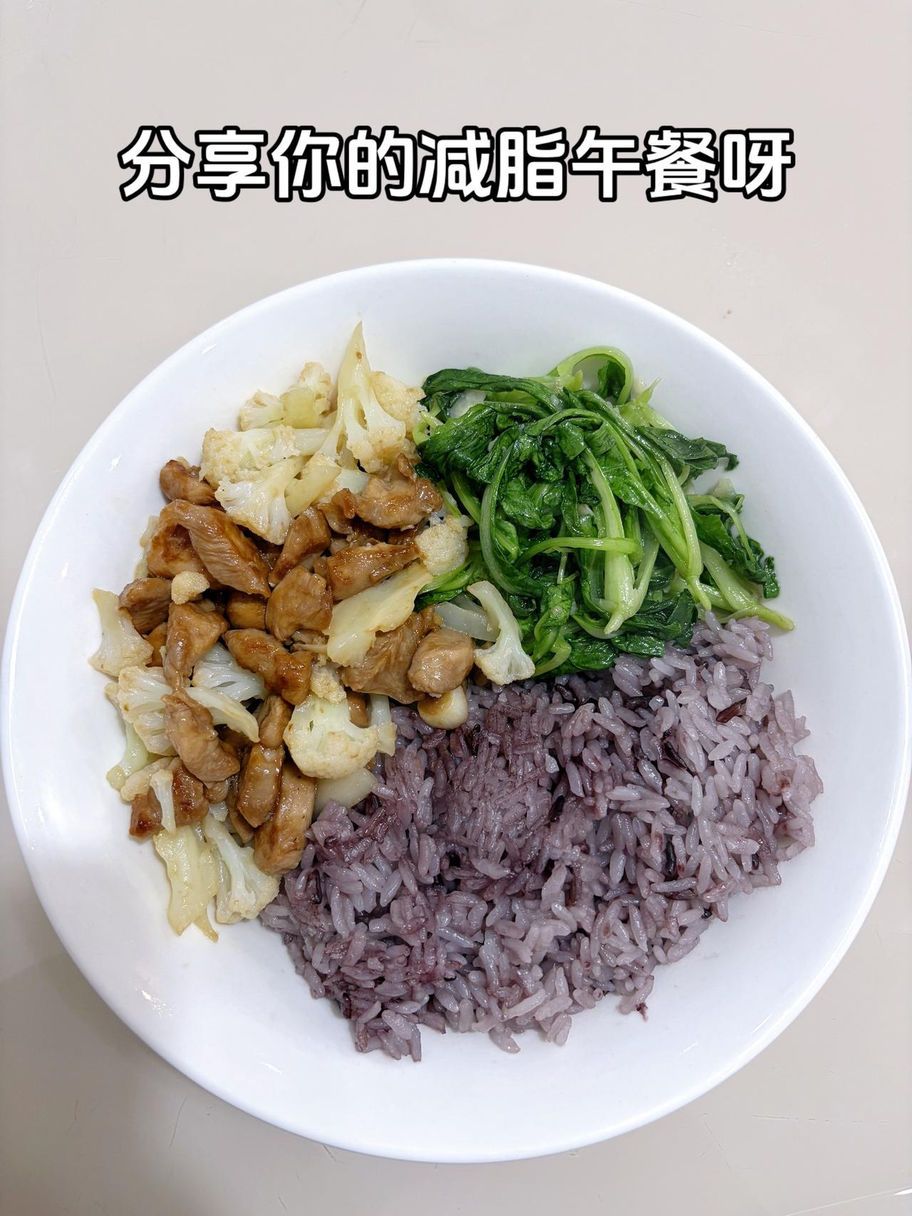 自律减脂健康餐 今日减脂午餐:花菜炒鸡肉+蒜香小白菜