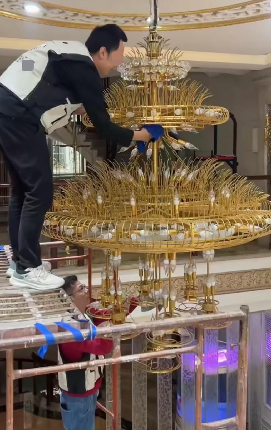 贫穷限制了我的想象,看了“潮汕洗灯哥”的视频,这才知道,清洗别墅里的水晶吊灯,根本就不应该属于家政保洁范围! 而是一个小型清洁工程! 三四个人,还需要架子,复杂一点的灯,需要忙一整天。 先是搭架子,然后分解拆灯! 每个小灯头都需要清洗,擦干! 灯的主干和分支都要单独清理擦拭。 然后试灯,更换不亮的灯芯,最后组装! 前后对比,效果差异明显。 猜猜看,这样的活,收益如何?