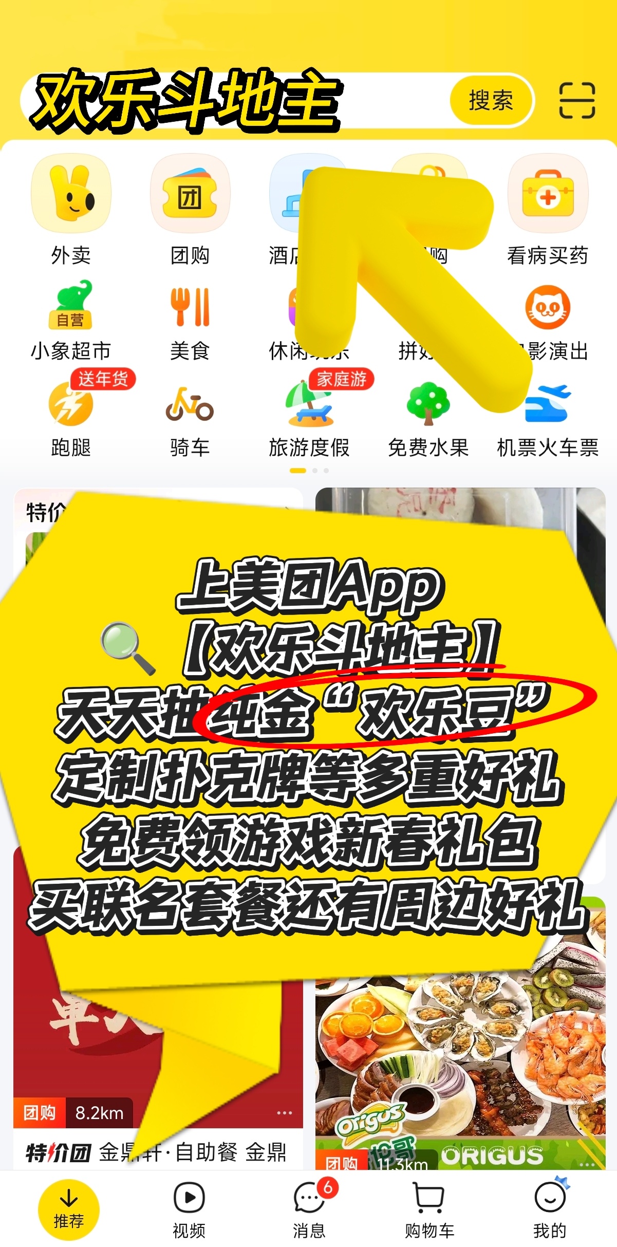 过年提前练习牌技过年团圆欢乐多,美团团购备好年货,和家人一起玩欢乐斗地主,手气超旺,还能抽好礼,年味直接拉满🧧