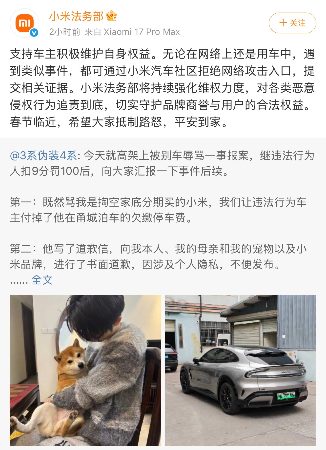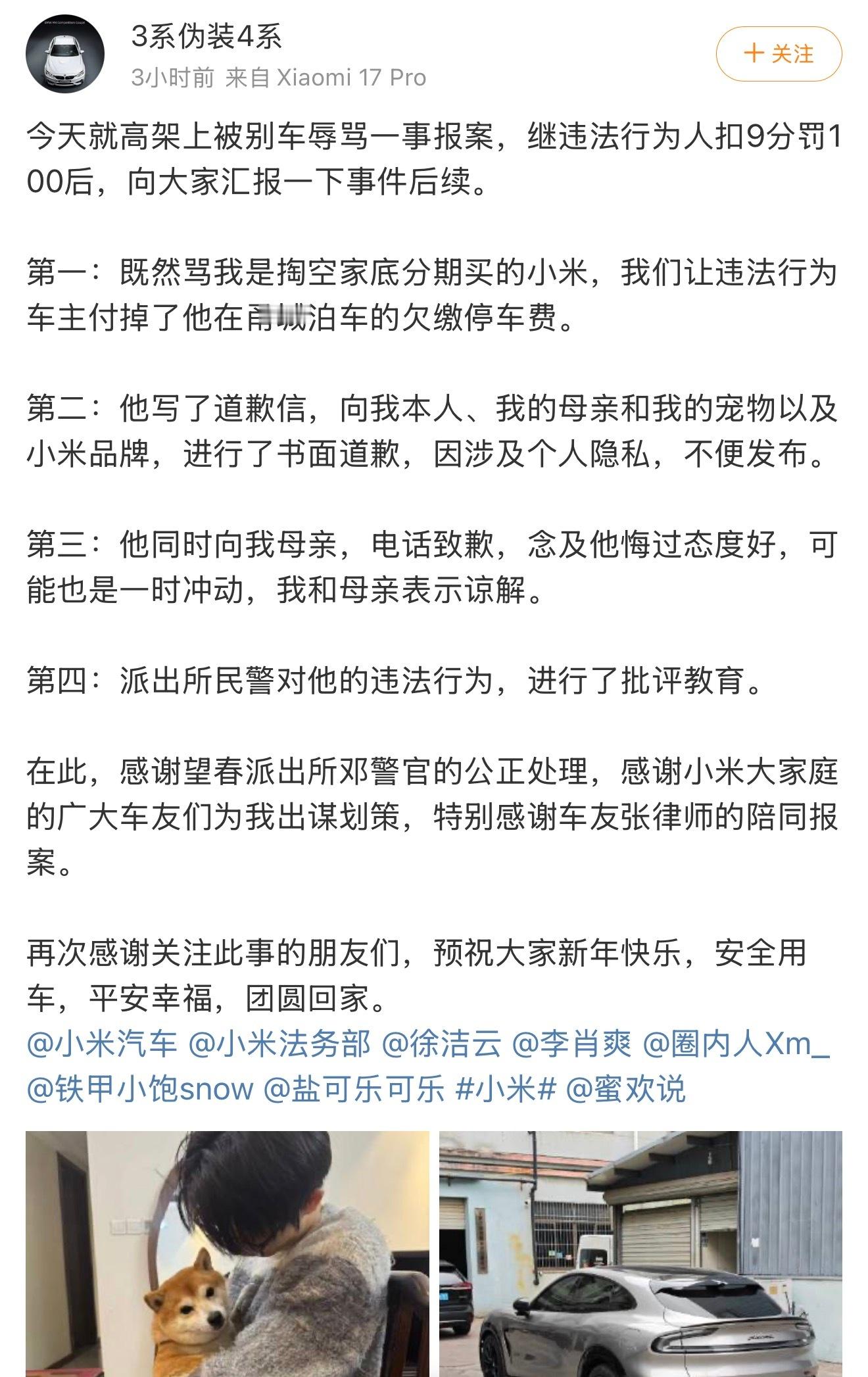 少一些戾气,抵制这种违法行为,也支持遇到侵害权益的车主勇敢拿起法律的武器捍卫自己。看了一下原视频,真的很危险!小米也专门为车主开了相关的证据收集入口,提供法律援助,这个点赞!支持勇敢维权!