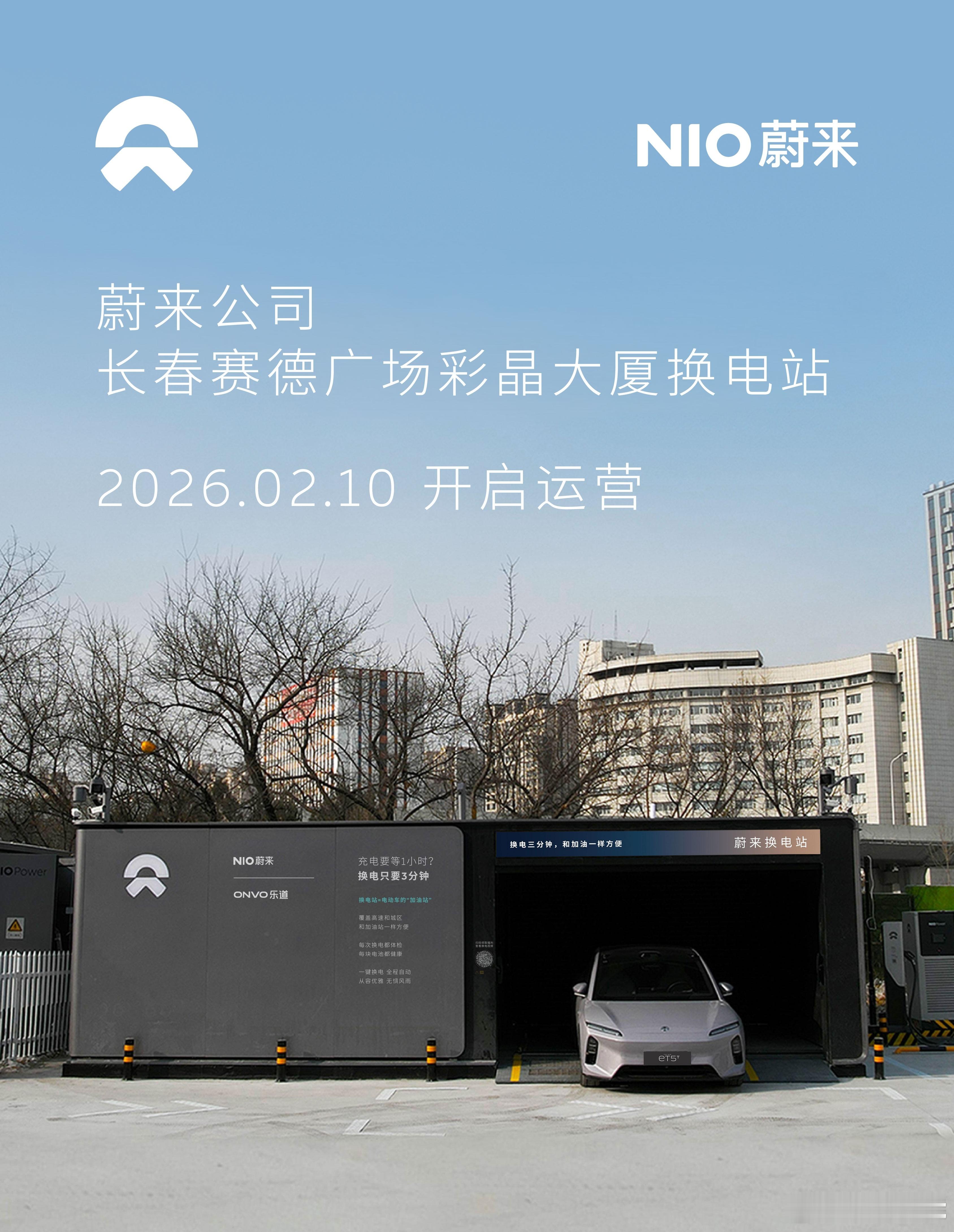 蔚来换电站 | 长春赛德广场彩晶大厦 上线周边3公里覆盖8大核心商圈、12大办公园区、20大住宅群截至2月11日,蔚来已在吉林省布局23座换电站