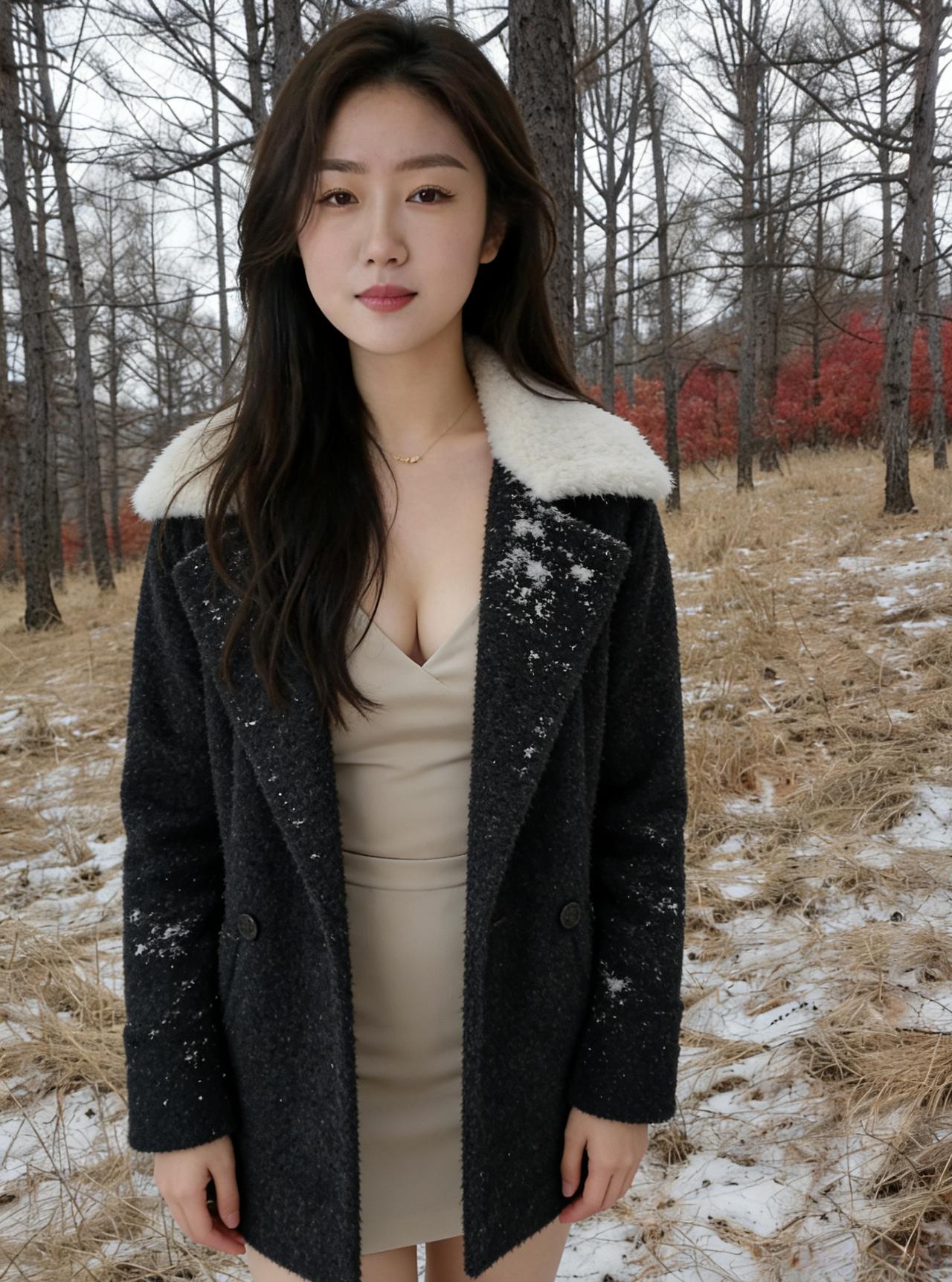 黑风衣驮着蓬松的白绒 像驮着一整个未化的雪季 而米色裙摆偷偷探出衣角 把冻土焐出细碎的春意 ~ 你抬手拢发时 惊落了枝桠的积雪 雪粒砸在枯草上 竟发出新芽破土的轻响 ~ 风穿过林间的肋骨 带来远山的消息 你望向镜头的目光 比枝头的暖阳更烫 让所有冬眠的情绪 都开始蠢蠢欲动地生长