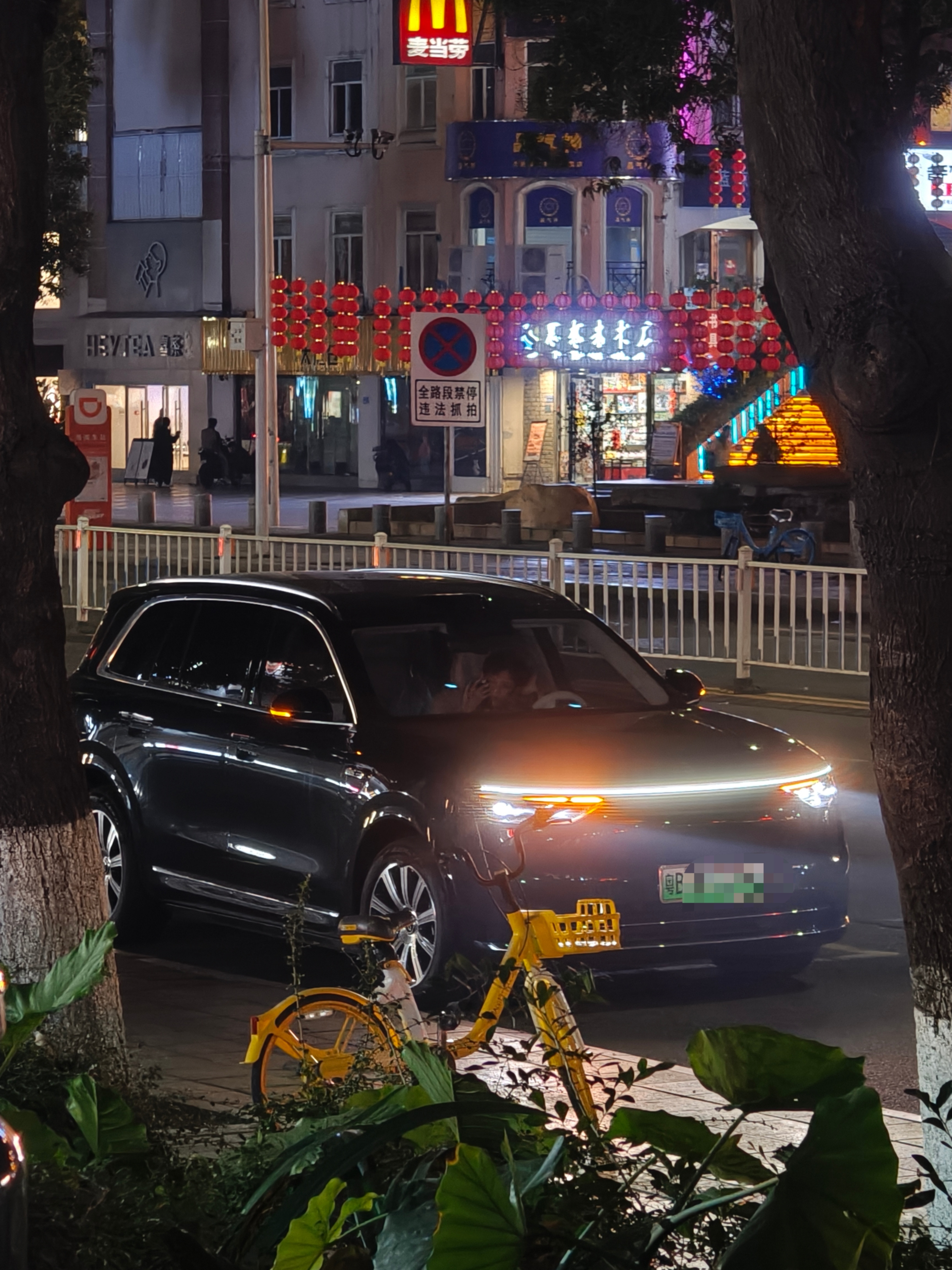 晚上路边的车我一眼看过去,贯穿灯加上投影灯,这不就一眼问界 M8 吗。