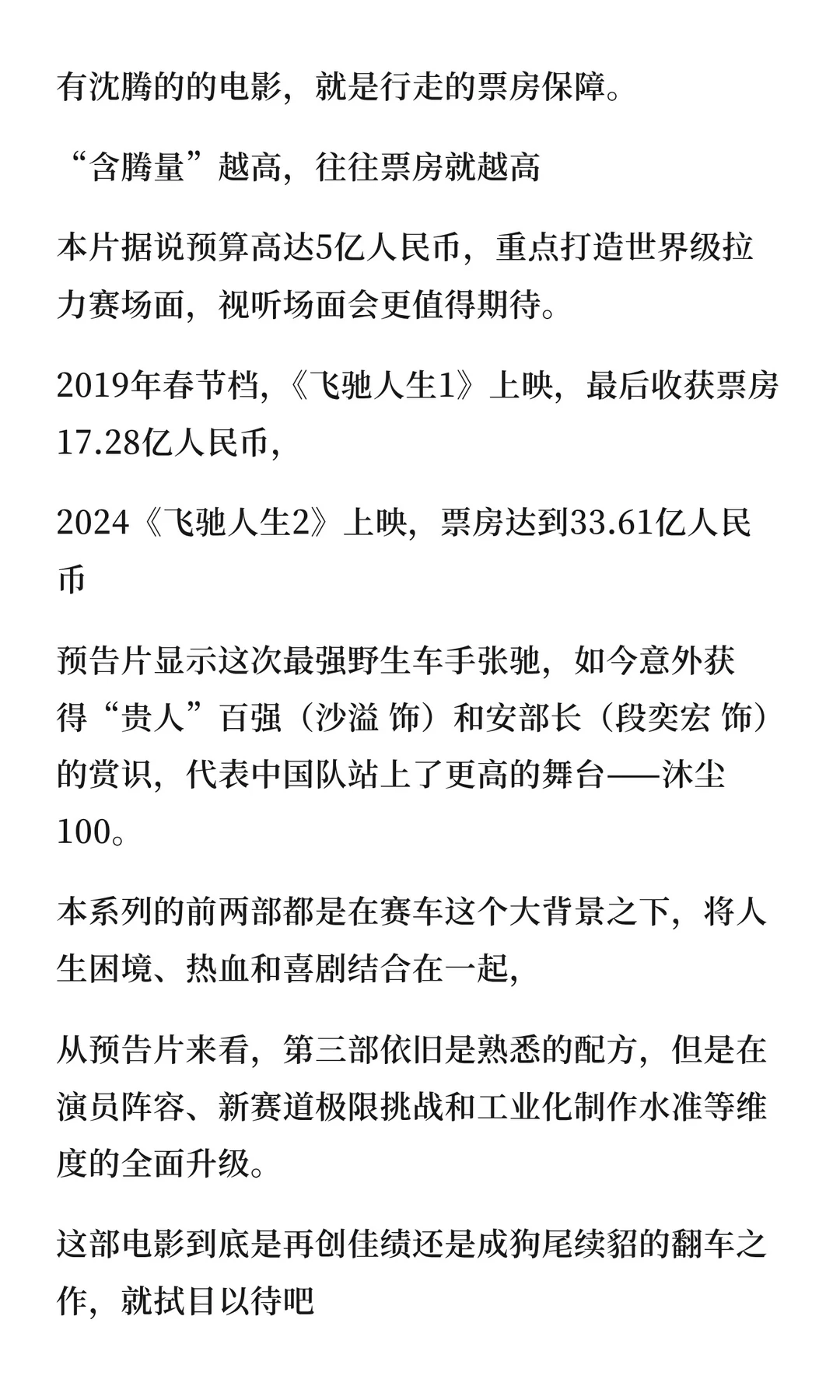 今年的春节档电影票房预售,飞驰人生3一骑绝尘了,很多大v的推测上来看,票房至少要