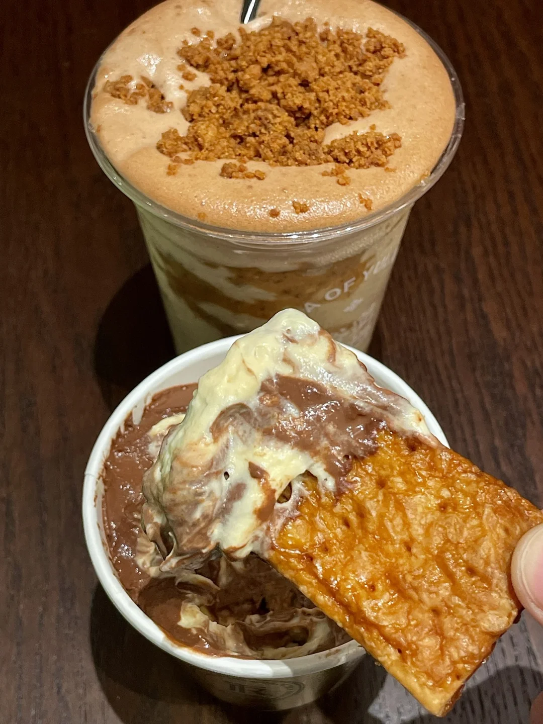 裕莲茶楼新出的庄园可可系列简直仙品。。 流心提拉米苏太惊艳了!! 巧克力味浓拽了!!口感层次超丰富!! 焦糖法酥滇红可可里面脆脆的黄油焦糖酥粒加上浓醇的可可!!好喝到无语了。。。