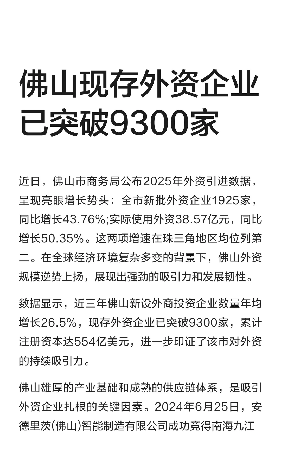 佛山现存外资企业已突破9300家