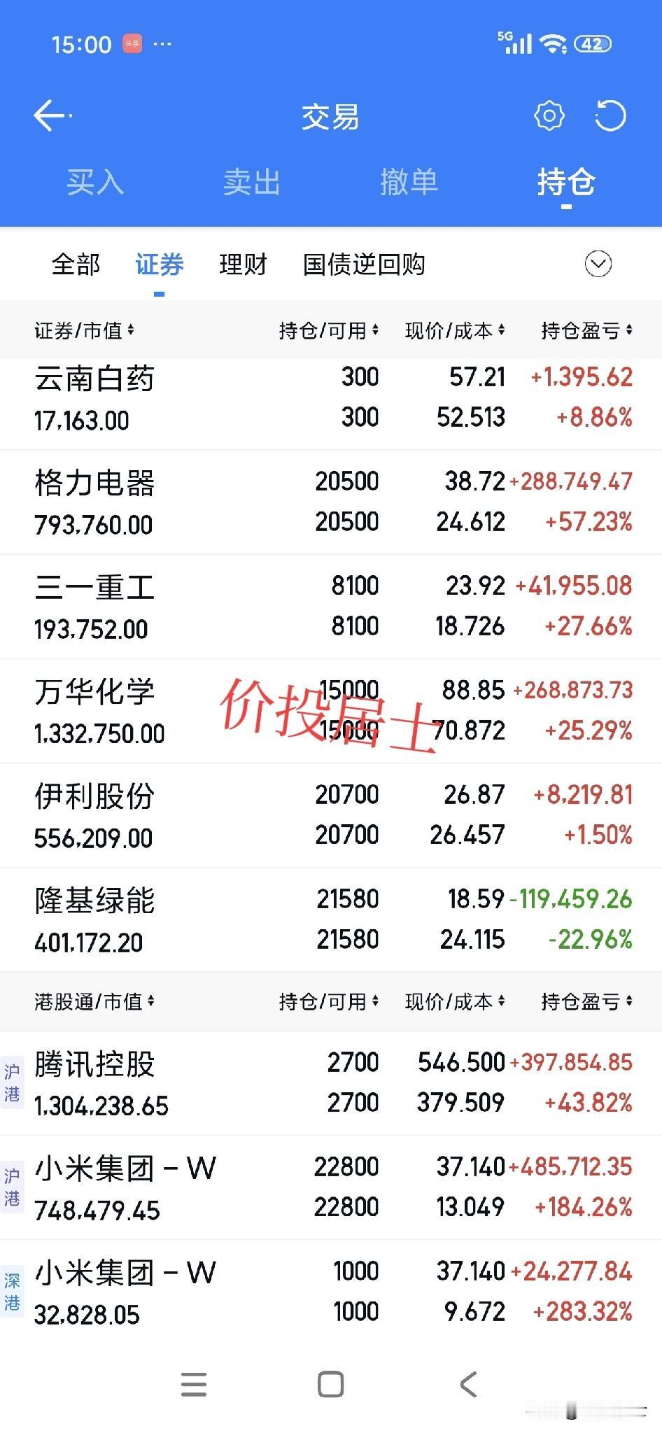 这会A股收盘了!大盘在年前波动越来越小,估计不少主力要积蓄力量在年后操作了[笑哭]并且过年的假期时间挺长的,对于做短线的资金来说不确定性就变大了,我都怀疑这部分资金是不是提前放假了[笑哭] 今天统一回答一下不少朋友问我,某某公司看到多少目标价格的问题,其实我自己都不知道[笑哭]短期的价格上涨或者下跌也不是我换手的逻辑!最近的一次换手是在去年,把邮储银行港股清仓了,全换成了万华,当时来看,邮储银行港股没有卖在短期高点,万华化学也没有买在短期低点[笑哭] 所以我不是看的短期股价实施的交易行为!当时也就是觉得看万华比邮储银行更能看懂些,所以那次换手也不是短期行为。 再有希望一些朋友不要问我什么一些持仓公司的投资逻辑,首先说以前我都写过,其次我觉得既然问这个问题,就不应该进入股市。所以我为什么现在不大讲某些公司的投资逻辑了,就是这个原因[祈祷]