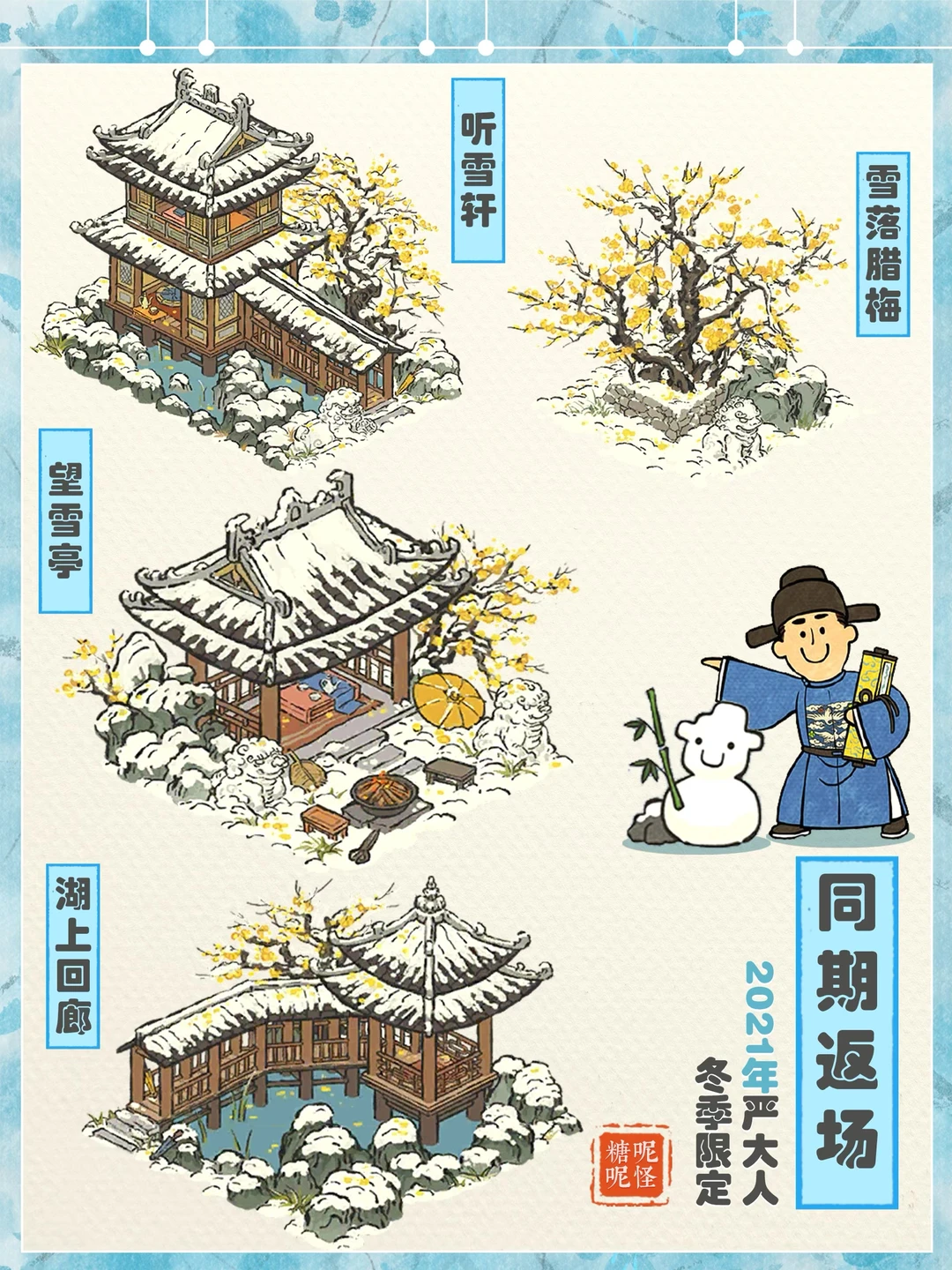 12月16日,秋季限定建筑下架,冬季限定即将开启兑换,20年,21年,22年,23年,24年冬限同期返场。 友情提醒:11点之后再开启游戏找严大人哦(否则出现季节限定大概率是秋限)