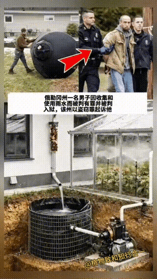 刷新认知了!在美国接雨水竟要坐牢? 说出来你可能不信,在美国有些地方,接天上掉的雨水,真能给你抓去坐牢,这事不是瞎编的,有一件真实发生在2012年的事。 主角叫加里·哈林顿,家住美国俄勒冈州伊格尔波恩特市,手里有一块170英亩的地,差不多有0.69平方公里那么大。 他在自己地里挖了三个蓄水池,初衷特别简单,就是收集点雨水,一是怕天干物燥引发火灾,存点水好应急防火;二是地里会有一些小动物,比如松鼠、野兔之类的,存点雨水能让它们喝上一口。 就这么点再朴素不过的想法,没招谁没惹谁,结果直接被当地政府告了,法院最后判了他30天监禁,还要交1500美元罚款,折算成人民币差不多快一万块钱了。 很多人听完都懵了,接个雨水而已,至于吗?你猜罚款理由是什么?说出来确实有点玄幻,当地政府说,他收集雨水的行为,改变了自然生态的水道,相当于侵占了公共资源。 哈林顿自己也特别不服气,他说早在2003年,当地政府就给过他储水许可证,后来不知道为啥,又没道理地给收回去了。 而且他地里那三个蓄水池,有一个都已经用了37年了,之前一直没事,怎么突然就违法了,他不肯入狱,还想着上诉,结果法院催着他,两周之内必须去坐牢服刑。 可能有人会说,这是不是就这一个特例啊?其实不是,美国西部好多干旱的州,都有类似的规定,接雨水都得小心翼翼。 就说科罗拉多州,之前更严格,连居民在自家屋顶接雨水都禁止,后来放宽了点规矩,现在每户最多只能放两个雨水桶,总共储水量不能超过110加仑,差不多416升,还不够半立方米。 而且收集的雨水,只能用来浇浇院子里的花花草草、小菜园,不能干别的,还有犹他州,允许收集最多2500加仑的雨水,但要是用的容器超过两个,或者储水量超标,就得去州里登记,不然也是违法。 有人可能会疑惑,天上的雨水,落下来就是自己家的地,怎么就成公共资源了? 这就得说说美国西部的一个老规矩,叫“先占权制度”,说白了就是“谁先用水,谁就有优先使用权”。 这套规矩早在19世纪加州淘金热的时候就有了,那时候矿工们自发定的规矩,后来被写进了法律。 美国西部大多是干旱地区,年降水量不到400毫米,经常闹大旱,水资源特别稀缺,一条河的水,可能刚够满足那些早早就拿到用水权的农场主、企业和城市的需求。 你在自己家地里接雨水,看似没影响,其实是把本该流进河流、补充地下水的雨水给“截胡”了。 这样一来,下游那些有合法用水权的人,用水就会受影响,所以政府才管得这么严。 哈林顿之所以被罚得这么重,不只是因为接雨水,关键是他那三个蓄水池太大了,总共收集了差不多1300万加仑的雨水,相当于20个奥运泳池的水量,对下游的影响太大了。 说实话,刚开始看到这个新闻的时候,我也觉得特别离谱,接个雨水还要坐牢,这规矩也太苛刻了。 但了解完背后的原因,又觉得能理解一点,毕竟水资源稀缺,要是没人管,上游的人把水都截走了,下游的人就只能渴着。 以前美国西部因为抢水,经常发生械斗,后来有了这套规矩,才算平息了矛盾,保证了大家都能用上水。 不过我还是觉得,规矩是死的,人是活的,哈林顿的初衷是好的,就是为了防火、喂小动物,又不是为了盈利,也没造成什么实际的危害,判30天监禁、罚1500美元,还是有点太重了。 而且这套一百多年前的规矩,放到现在,确实有些地方显得不合时宜了,现在大家都提倡节水,收集雨水本身就是一种节水的方式,要是管得太死,反而不利于节水。 好在现在好多州都开始放宽限制了,比如亚利桑那州、德克萨斯州,还推出了税收优惠,鼓励商家在建筑上装雨水收集系统。 其实这事也能看出来,任何规矩的制定,都是为了平衡大家的利益,美国政府管接雨水,不是故意为难老百姓,核心还是为了合理分配稀缺的水资源,避免大家为了抢水闹矛盾。 但话说回来,平衡利益的时候,也得考虑到老百姓的合理需求,像哈林顿这样,只是出于应急防火、照顾小动物的目的,收集少量雨水,完全可以网开一面。 没必要一上来就判刑、罚款,毕竟法律的初衷,应该是保护老百姓的合理权益,而不是单纯的惩罚。 另外,这事也给我们提了个醒,不同国家、不同地区的规矩,差异是真的大,我们觉得理所当然的事情,在别的国家可能就是违法的,反过来也一样。 所以不管是去别的国家生活,还是了解别的国家的事情,都得先搞清楚当地的规矩,不然很容易惹上麻烦。