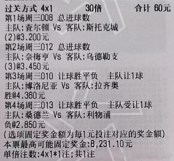 2串:008 2球 012 3球4串:008 2球 012 3球 010让胜 013让负成绩串:008(0-2 2-1)012(2-1 1-2)010(2-0 3-0)