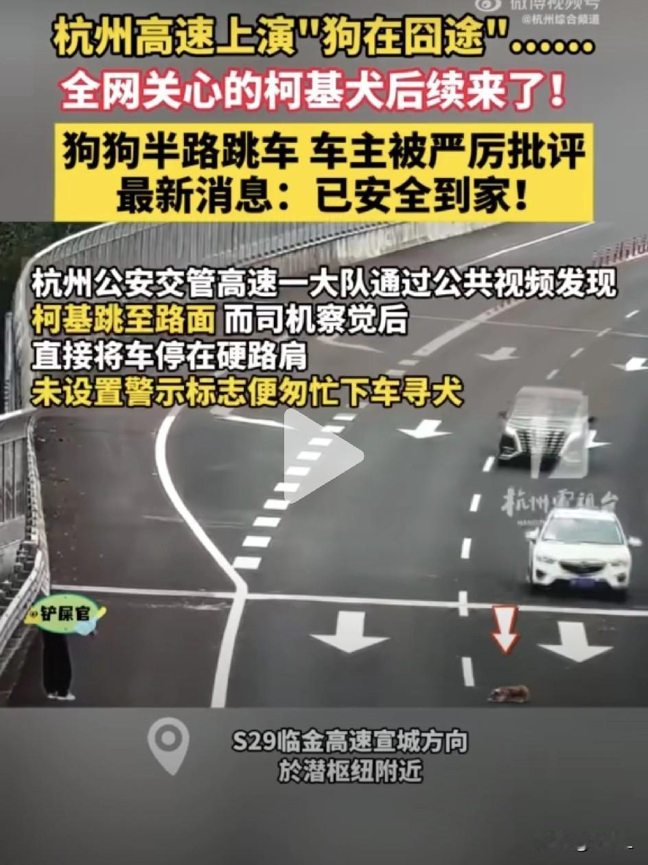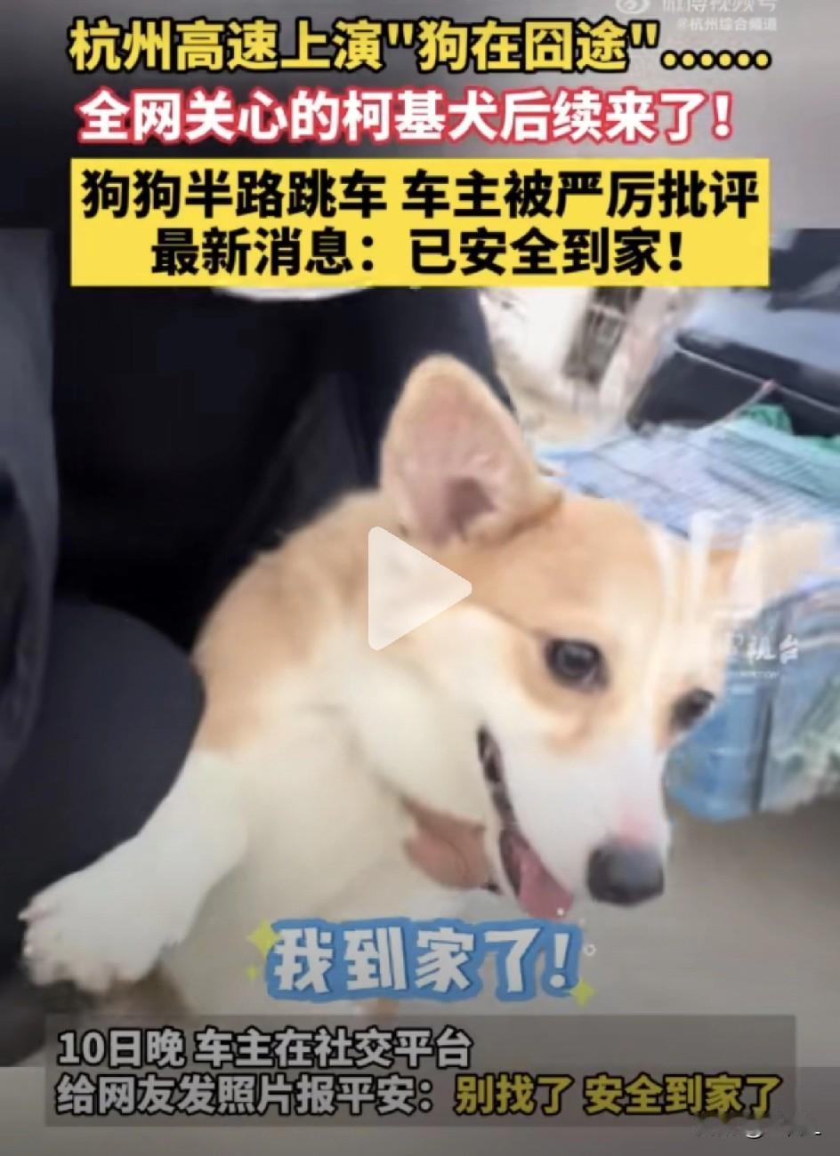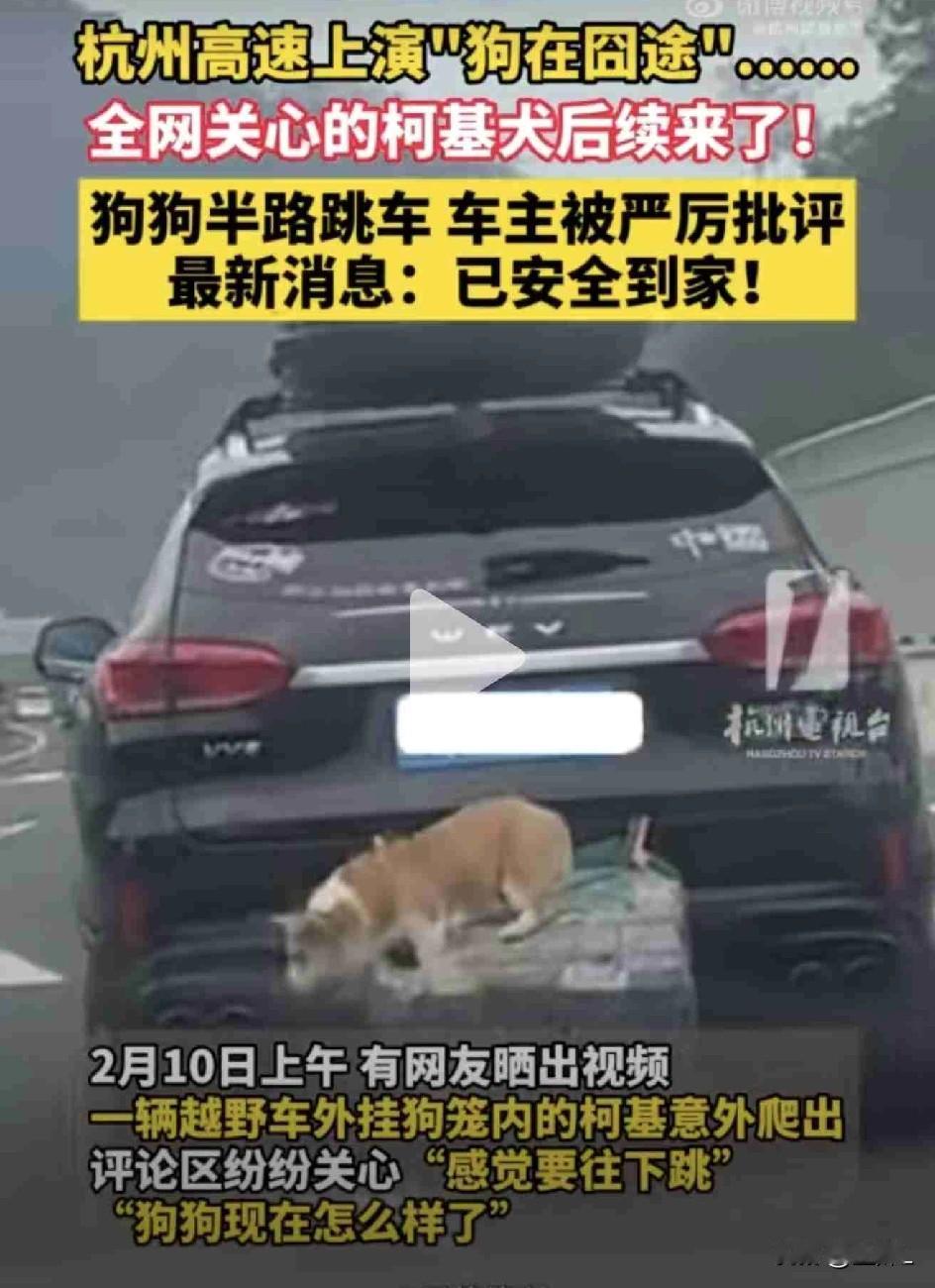 狗子高速“越狱”惊魂!主人急刹找狗吓坏交警,蜀黍一句话全网惊出了一身冷汗…… 2月10日上午,一段“越野车尾挂狗笼上演现实版《狗在囧途》”的视频火了! 只见一只柯基在高速疾驰的车尾笼子里扭啊扭,竟把自己“挤”出了笼门,眼看就要表演“高空跳水”——网友急得直跺脚:“快回头啊你家狗要跳车了!”“狗子还好吗?急等后续!” 果然,下一秒狗子纵身一跃,滚落路面!黑色越野车司机猛地察觉,一个急刹就把车怼在硬路肩,连双闪都顾不上打,就慌慌张张冲下车开始“追狗大战”。 高速车流呼呼过,人和狗在路边上演“生死时速”,把监控前的杭州高速交警看得心头一紧:“这是不要命了啊!” 交警火速赶到现场,连人带车带狗一并“打包”拖离危险区。收费站外,交警对着司机一顿“输出”: “车停高速不打双闪、不放警示牌、还把老婆孩子留在车上?狗命重要,人命更重要啊!”司机连连点头认错。 不知道司机有没有后怕,反正全网惊出了一身冷汗!妈呀,把老婆孩子扔到高速路上的车里,警示牌也不放,双闪也不打。那一刻只想到了他家狗吧?压根没想到老婆孩子和自己也处在危险当中!而且还是巨大的危险! 当晚剧情更新——车主晒出柯基在家舒坦躺平的照片,配文自带得意:“别扒拉监控找了,俺们平安到家啦!”狗子眯眼吐舌,仿佛在说:“惊不惊喜?意不意外?” 网友笑疯:“狗子这波操作满分!” “司机这科目一得回炉重造啊!” “结局舒适,建议狗子报销交警队精神损失费!” 但更多的人是后怕: “这狗差点成了他家的催命鬼!” ”这要是出事,绝对热搜头条!” “人命重要还是狗命重要?” “这波啊,狗是纯喜剧,人是真惊悚。” “建议车主给全家(包括狗)一起补补交通安全课。” 结局是皆大欢喜了,但仔细想想,真叫人头皮发麻! 这哪是“狗在囧途”?简直是“全家人在玩命”! 狗子成功“越狱”,主人瞬间“降智”——把老婆孩子忘在高速车流里,自己上演狂奔追狗。 这剧情,编剧都不敢这么写!要不是交警出手快,万一后车没刹住……那热搜标题可能就是另一个画风了。 狗子是回家了,但有些安全常识,恐怕还在高速上“流浪”。 道路千万条,安全第一条。宠物流浪可找回,生命可没有“回城卷轴”啊! 素材来源:钱江晚报,浙江新闻,侵联删! 带定位晒今日生活 我的今日状态:💰期待暴富 我这里的天气:☀️晴天