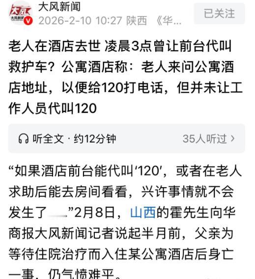 陕西西安,六旬老人从外地过来看病,他怕给远嫁到这边的女儿添麻烦,就没吱声,独自在外面住40一晚的酒店,这天凌晨,老人突发不适,他去前台求助,让帮忙拨打120,工作人员却说他也不会,让老人自己通知家属,老人听完沉默了,重新回到房间,谁料,回房后他突发疾病,再也没能出来。儿女得知消息后,被前台的做法寒透了心。 这是一个让人听了心里堵得慌的故事,像是一块石头压在胸口,喘不上气。 一位六十多岁的老父亲,孤零零地走了,他走的时候,身边没有一个亲人,住的是一晚只要40块钱的廉价旅馆。 最让人受不了的是,他其实是为了看病才来到女儿所在的城市,可直到最后闭眼,他都在拼命替女儿“省事”。 这位老父亲身体一直不太硬朗,这次大老远跑过来,本意是想做个彻底的检查和治疗,按理说,到了女儿的地盘,住家里或者让孩子陪着是天经地义的。 但这老爷子心太细,也太疼孩子了,他琢磨着女儿嫁过来这么多年,工作忙得团团转,家里也是一堆杂事,自己这把老骨头要是贸然上门,还得让闺女跟着操心、请假、花钱。 于是他做了一个现在看来让人痛彻心扉的决定:谁也不通知,自己一个人悄悄来,悄悄看,看好了就悄悄回去。 为了省下那点看病钱,他在医院周边转悠了半天,最后选了个条件最差、价格最低的小旅馆,一晚上40块钱,那环境可想而知,设施简陋,能有个睡觉的地方就不错了,在他看来,只要能凑合一宿,省下的钱就能多买点药。 原本以为这就是一次普通的独自就医,可意外偏偏挑在最无助的深夜降临。 那天凌晨,老爷子突然感觉身体不对劲,胸口像压了块大石头,闷得透不过气,浑身难受得厉害。 他硬撑着从床上爬起来,一步一挪地蹭到了旅馆前台,那时候,他已经是强弩之末,声音虚弱得只有出的气没有进的气,他跟前台的值班人员说:“我不舒服,求你帮我打个120,叫个救护车吧。” 这时候,只要前台工作人员动动手指,拨出那三个数字,或许就能抢回一条命,可让人寒彻骨髓的一幕发生了。 那个工作人员面对一位明显处于极度痛苦中的老人,竟然冷冷地甩出一句:“我不会打,你自己联系家属吧。” 很难想象那一刻老爷子心里是什么滋味,绝望?无助?还是心寒?他没有力气去争辩,也没有再哀求,他就像一盏快要燃尽的油灯,默默地转过身,拖着沉重的步子,又一步步挪回了那个冰冷的房间。 那是他生前最后一次向世界求救,却被冷冰冰地挡了回来,回到房间后没多久,病情急剧恶化,他陷入了昏迷,再也没有醒过来。 直到第二天,家里人怎么也联系不上老人,心里发慌,四处打听寻找,才惊闻噩耗,当儿女们发疯一样赶到旅馆时,面对的只有父亲冰冷的遗体。 等到家属调看了监控,还原了那个凌晨的真相后,一家人的心彻底碎了,那是比失去亲人更深一层的愤怒和痛楚。 监控里,父亲那佝偻的背影,那卑微的求助,以及前台那句轻飘飘的“不会打”,成了儿女心中永远拔不出的刺。 40块钱一晚的旅馆,父亲省下的是钱,却把命搭进去了,而那个前台,或许是怕担责任,或许是嫌麻烦,用一句极其荒唐的借口,生生掐断了老人最后的生机。 但后来前台回应说当时老人只是询问酒店的地址以便拨打120,并没有要求自己打电话。 这事在网上传开后,无数网友看得眼泪在那打转,拳头硬是攥得紧紧的,大家愤怒,是因为那份对他人的冷漠简直令人发指,大家难过,是心疼这位老父亲那份沉默又伟大的爱。 中国像这样的父母太多了,他们一辈子都在做“减法”,减去自己的需求,减去给儿女的麻烦,哪怕到了生命的最后关头,想的还是“别拖累孩子”。 他们小心翼翼地活着,生怕自己成了孩子的负担,可恰恰是这种懂事,成了儿女们余生最大的遗憾。 这位父亲走得太委屈了,这件事像一记响亮的耳光,抽在了我们每个人的脸上。 它提醒着我们,出门在外,对陌生人多一份善意,关键时刻搭把手,真的能救命,别让那所谓的“怕麻烦”和冷漠,成为压垮生命的最后一根稻草。 愿老人安息,也愿这样的悲剧,再也不要发生了。 对此你怎么看? 信源:大风新闻