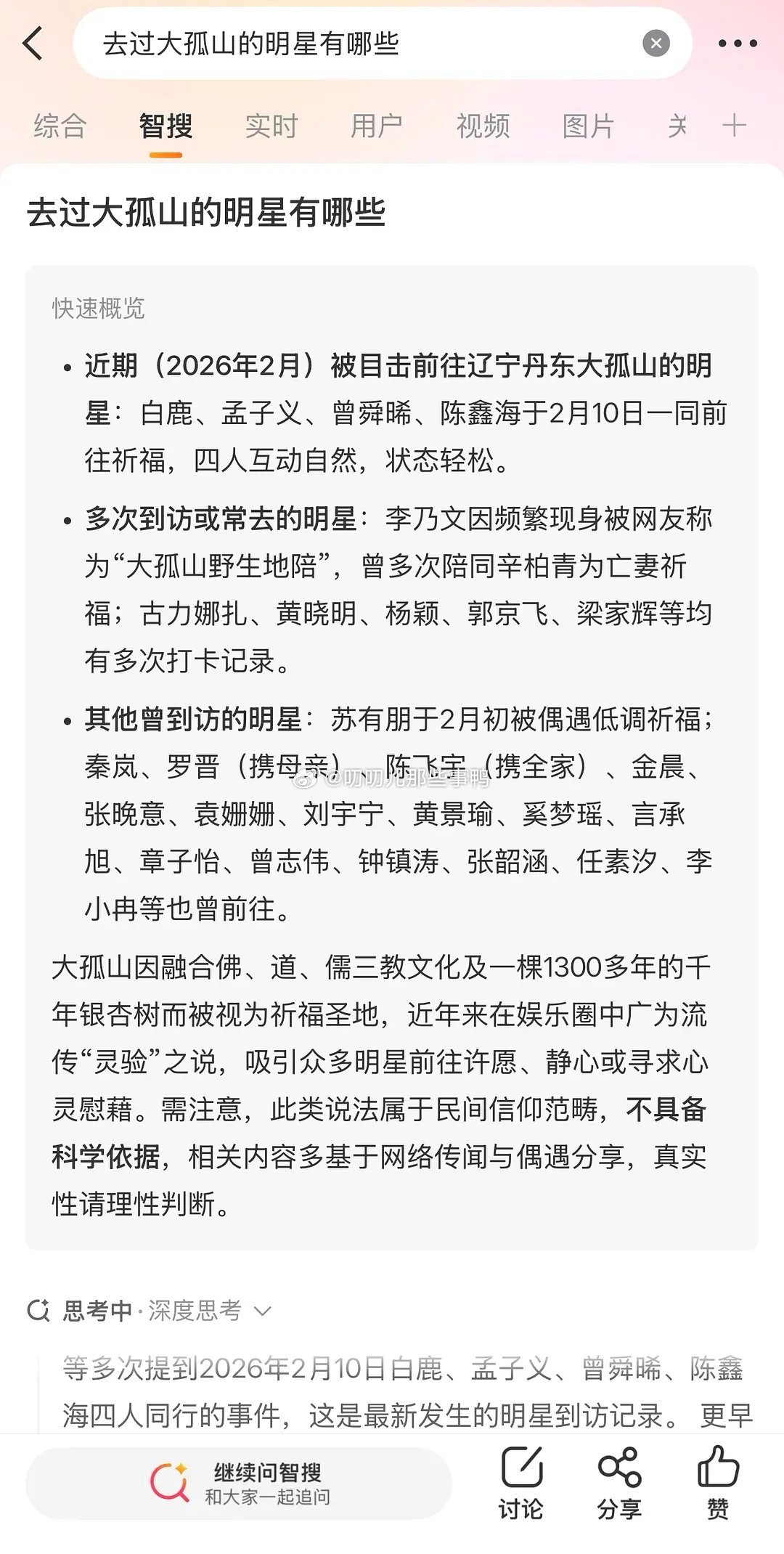 2026这一个多月超过二十个明星好像都去了大孤山~