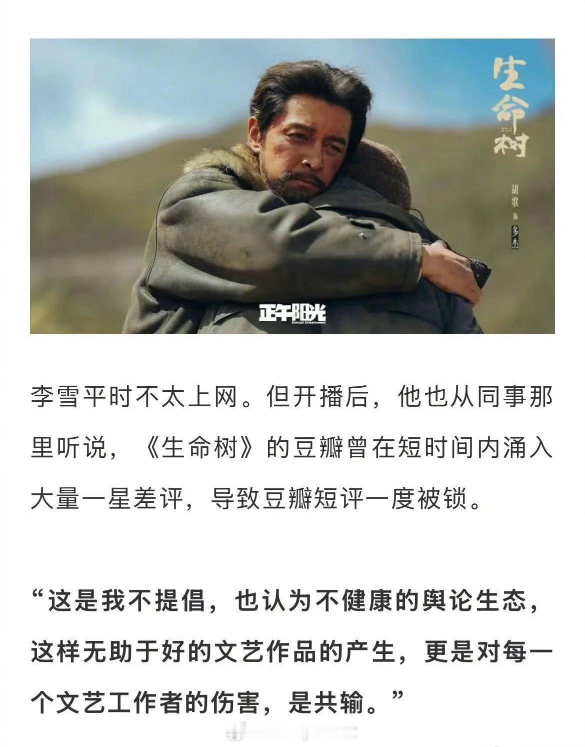 生命树导演回应生命树豆瓣一星差评:这是我不提倡,也认为不健康的舆论生态,这样无助于好的文艺作品的产生,更是对每一个文艺工作者的伤害,是共输。