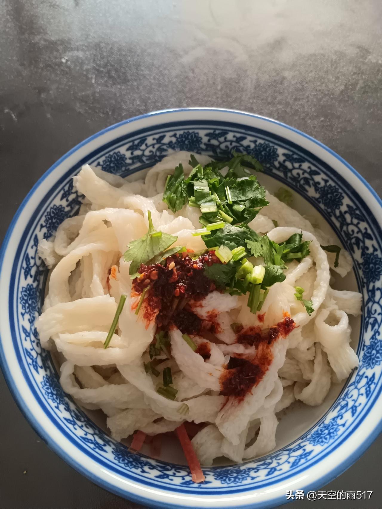 午饭吃个网上买的牛筋面,在家用水一泡,然后凉拌尝尝味。