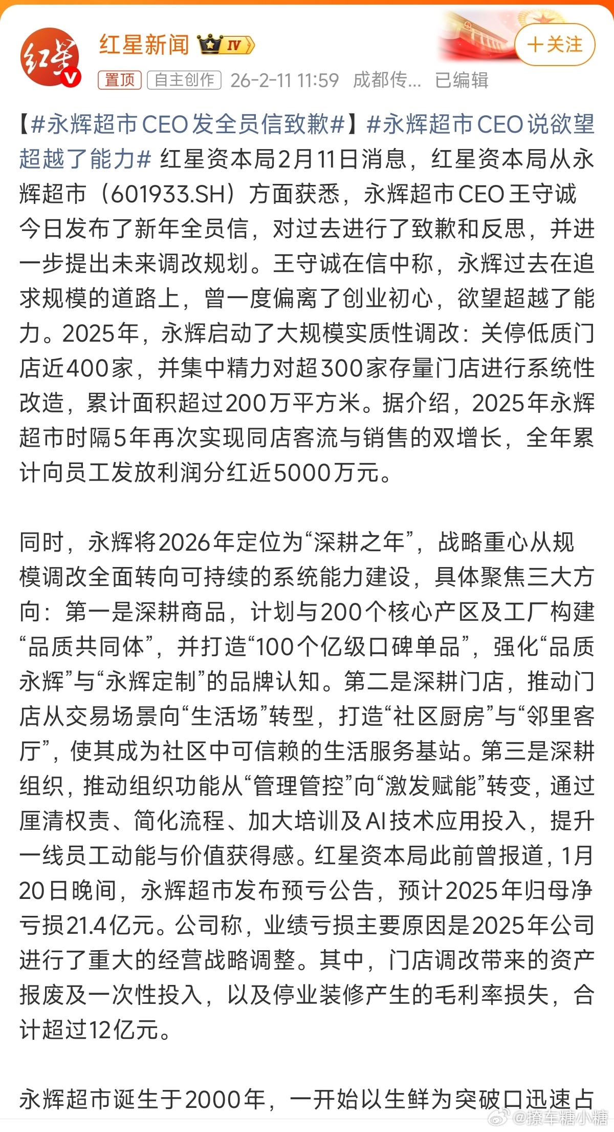 永辉超市CEO发全员信致歉以前觉得永辉东西卖的不错,但后面开始胖改后就说一直亏损